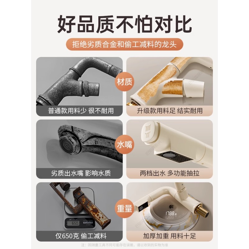 - 升级款【奶油白】全铜加厚◆两档出水◆灵活升降◆万向抽拉(终身质保)