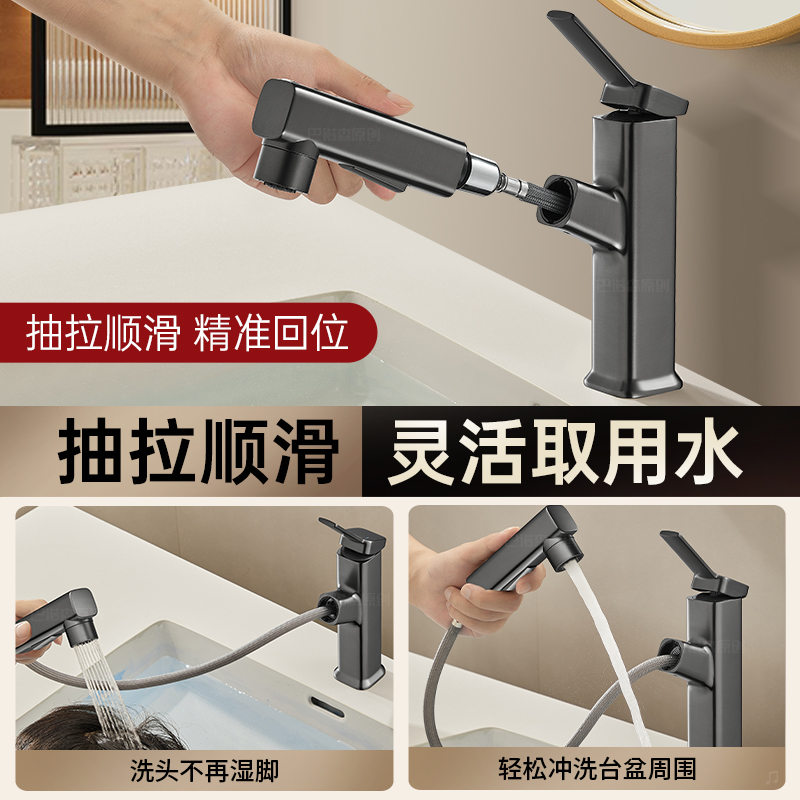 卫生间洗脸盆水龙头冷热抽拉式两用浴室柜洗手盆面台盆家用全铜