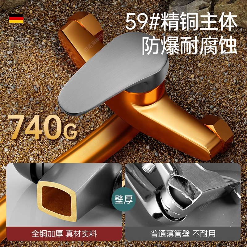- 枪灰●入墙式【全铜主体●18cm】防锈防漏●冷热款(赠送配件)