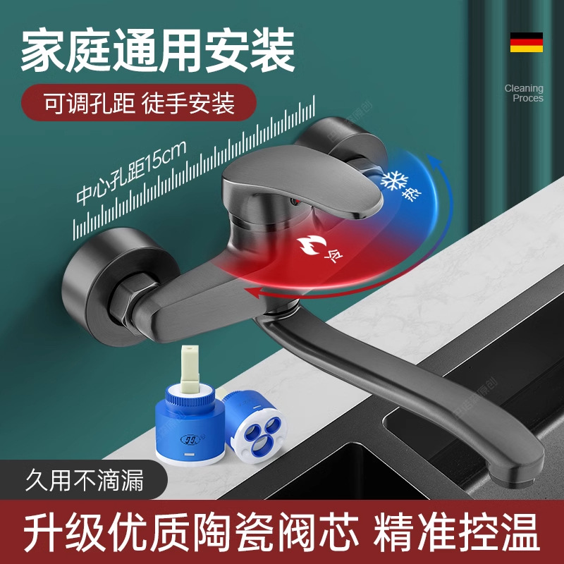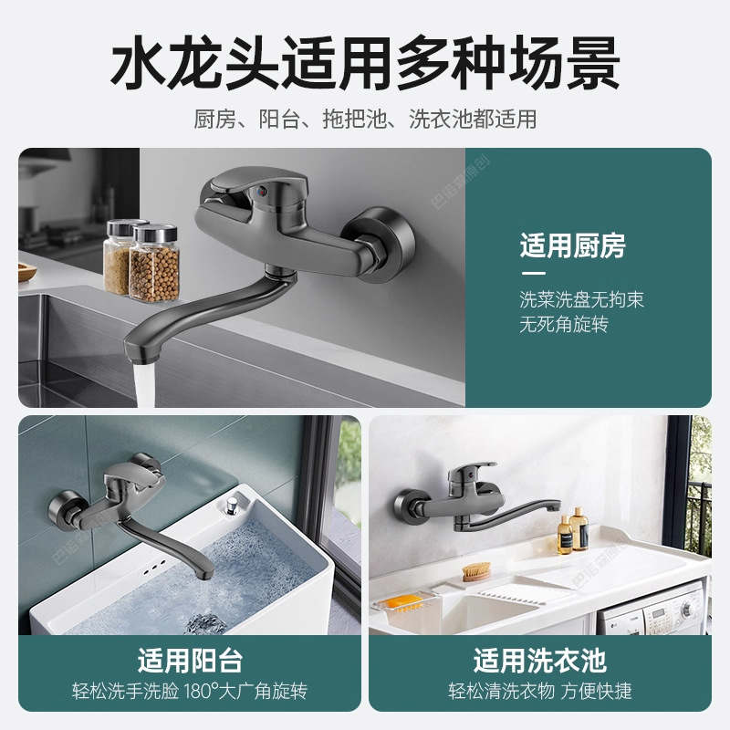 全铜入墙式冷热水龙头墙出加长厨房菜盆洗衣池洗衣台混水阀二合一