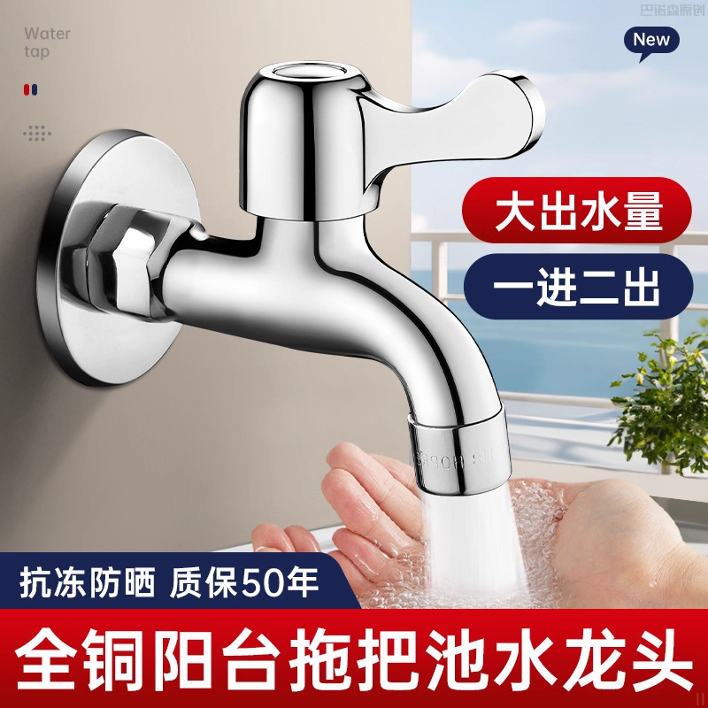 304不锈钢加长洗衣机水龙头卫生间阳台拖把池入墙式冷分龙头螺纹