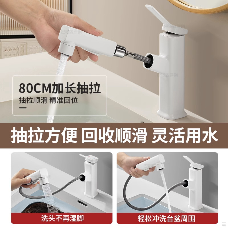 卫生间洗脸盆水龙头冷热两用抽拉式浴室柜洗手盆面台盆家用全铜