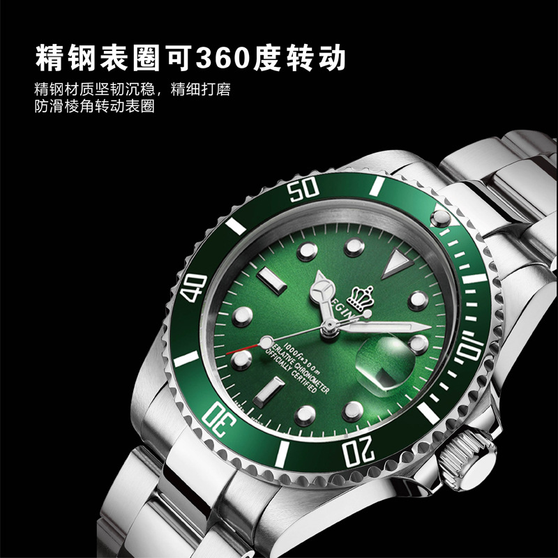 皇冠男士手表全自动绿水鬼防水日历女石英表情侣手表男