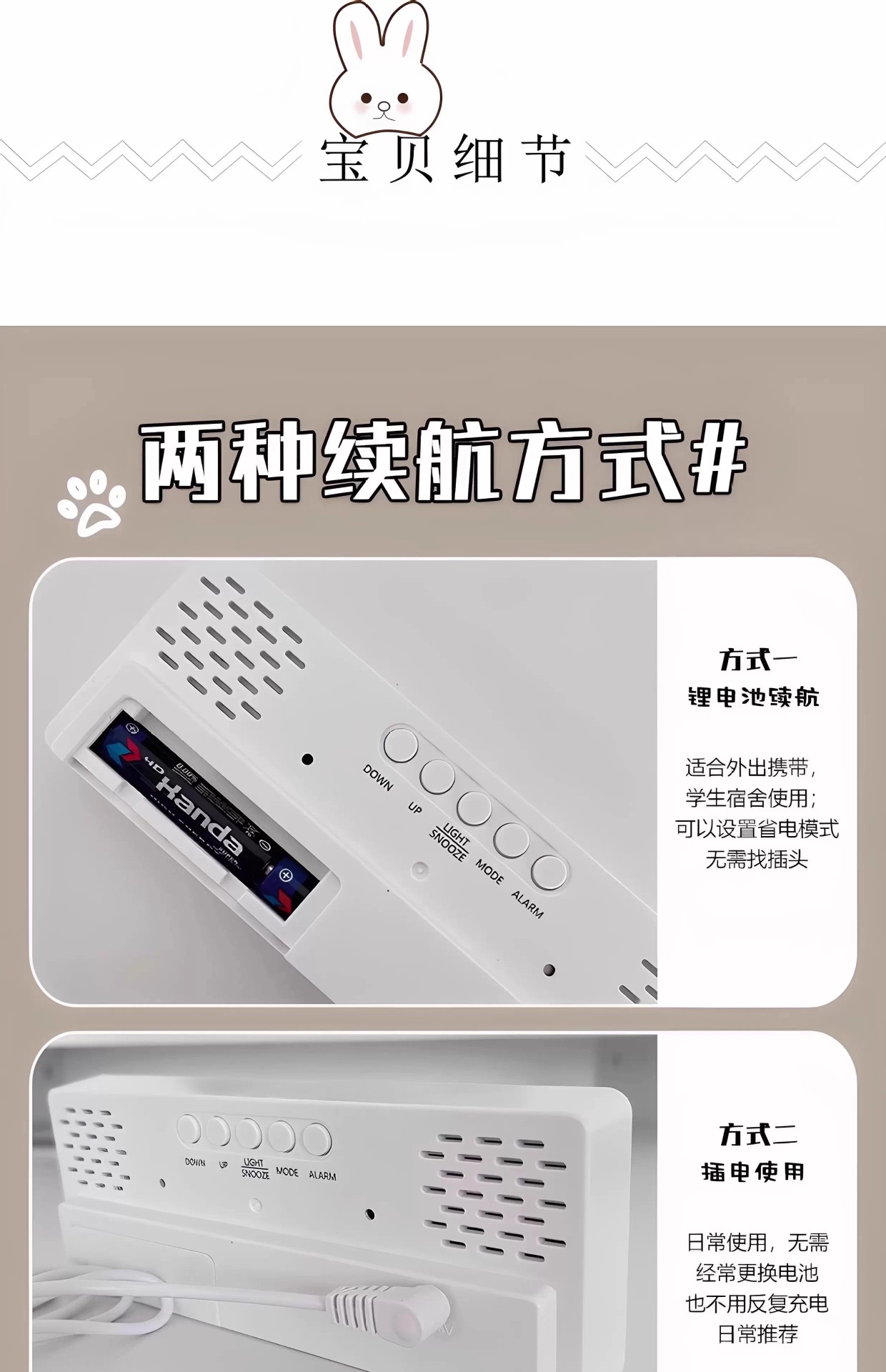 小闹钟桌面电子时钟LED夜光镜面静音时间显示器摆件数字台式钟表
