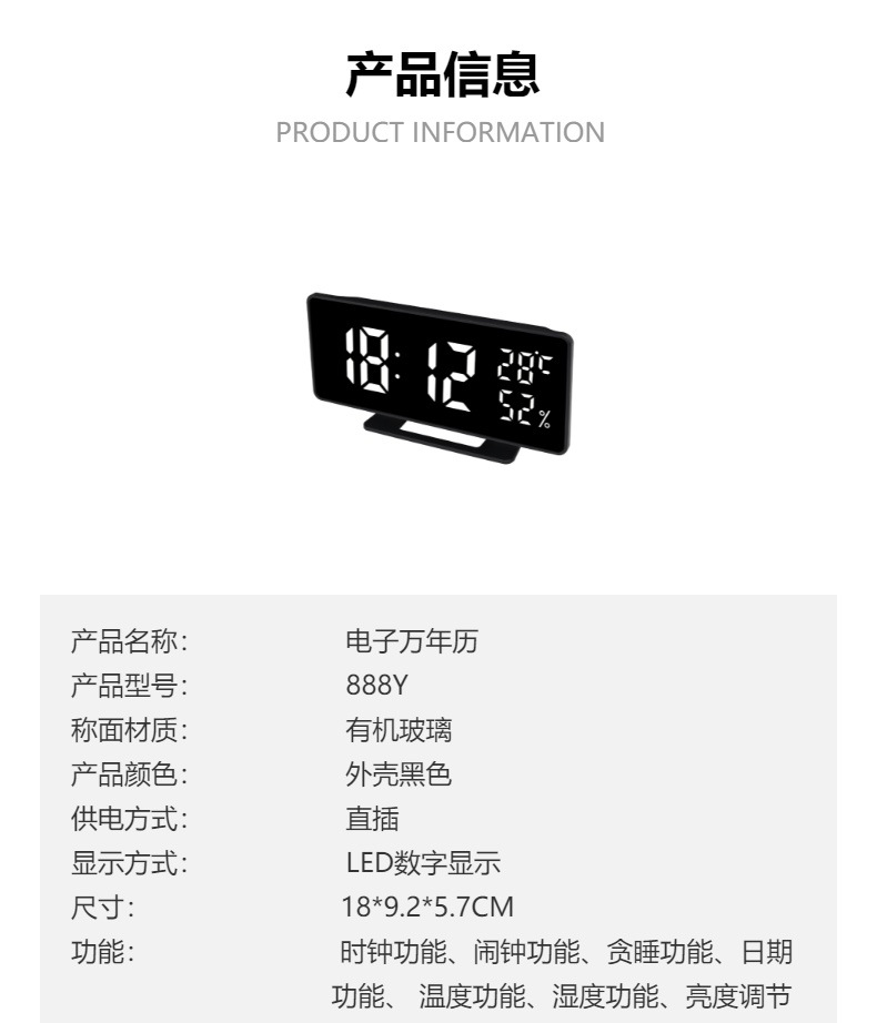 LED电子钟简约多功能时钟长方形大字体温度时尚新品