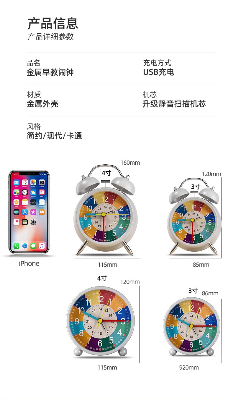 闹钟学生儿童专用起床神器创意桌面时钟摆件早教金属卡通小闹钟