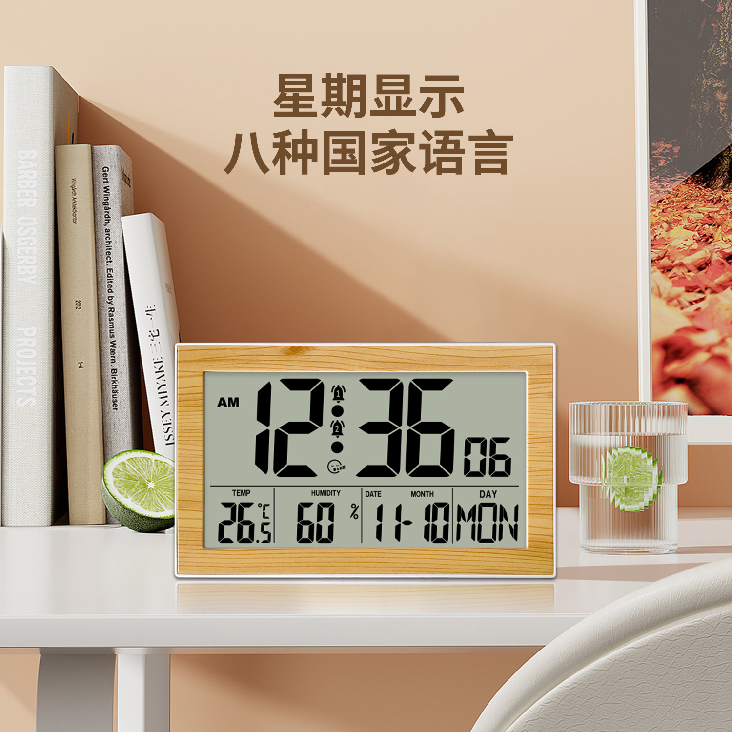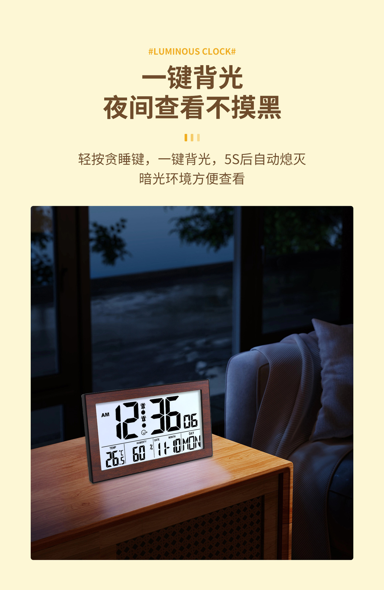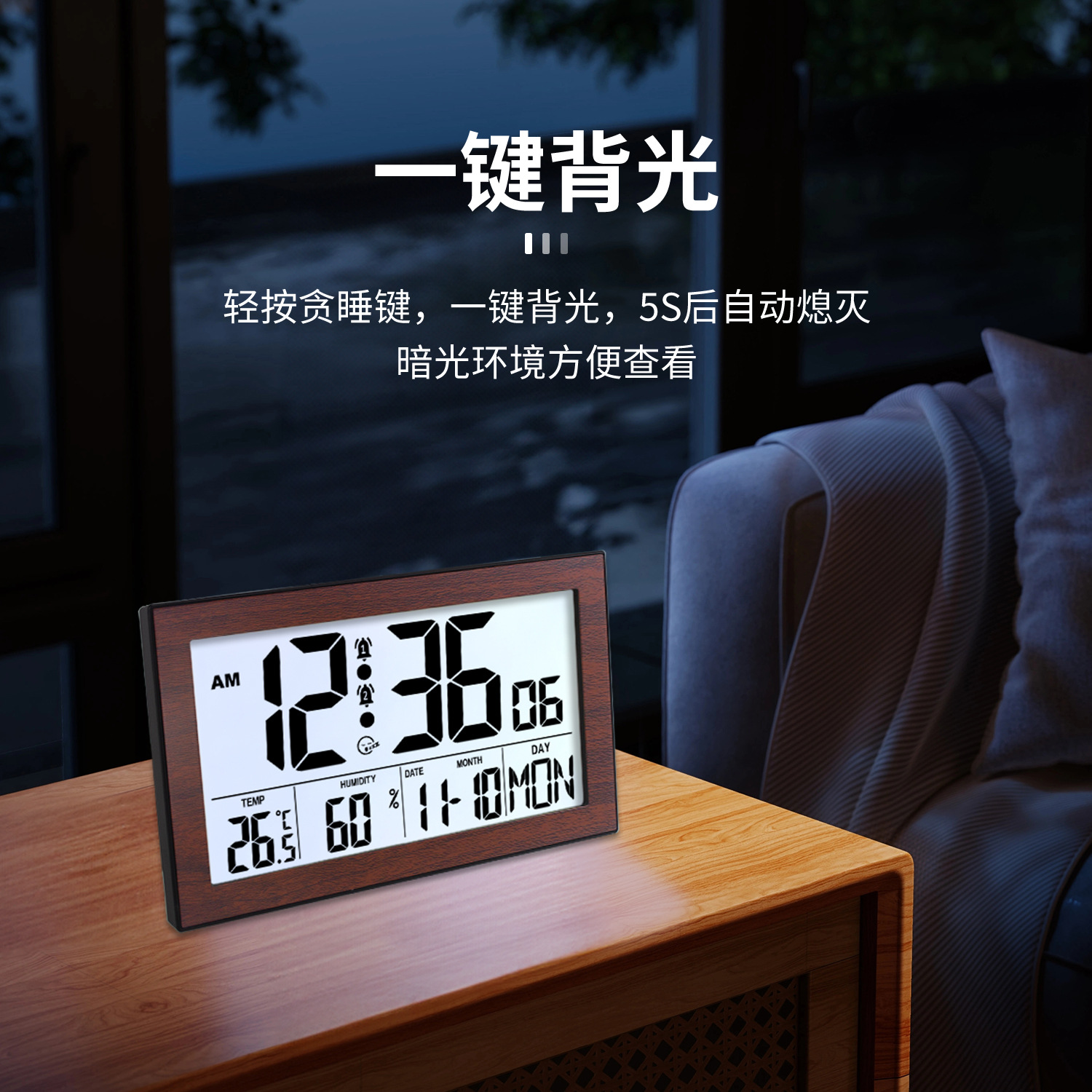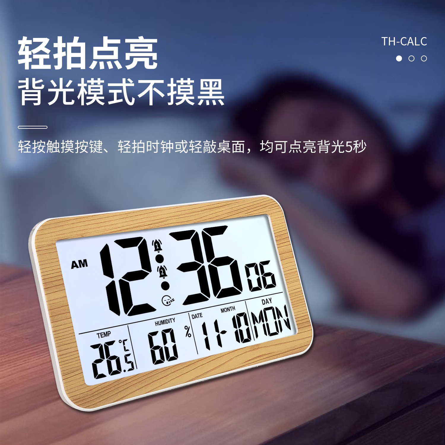 客厅电子钟声控夜光挂钟温湿度闹钟简约创意桌面家用台钟