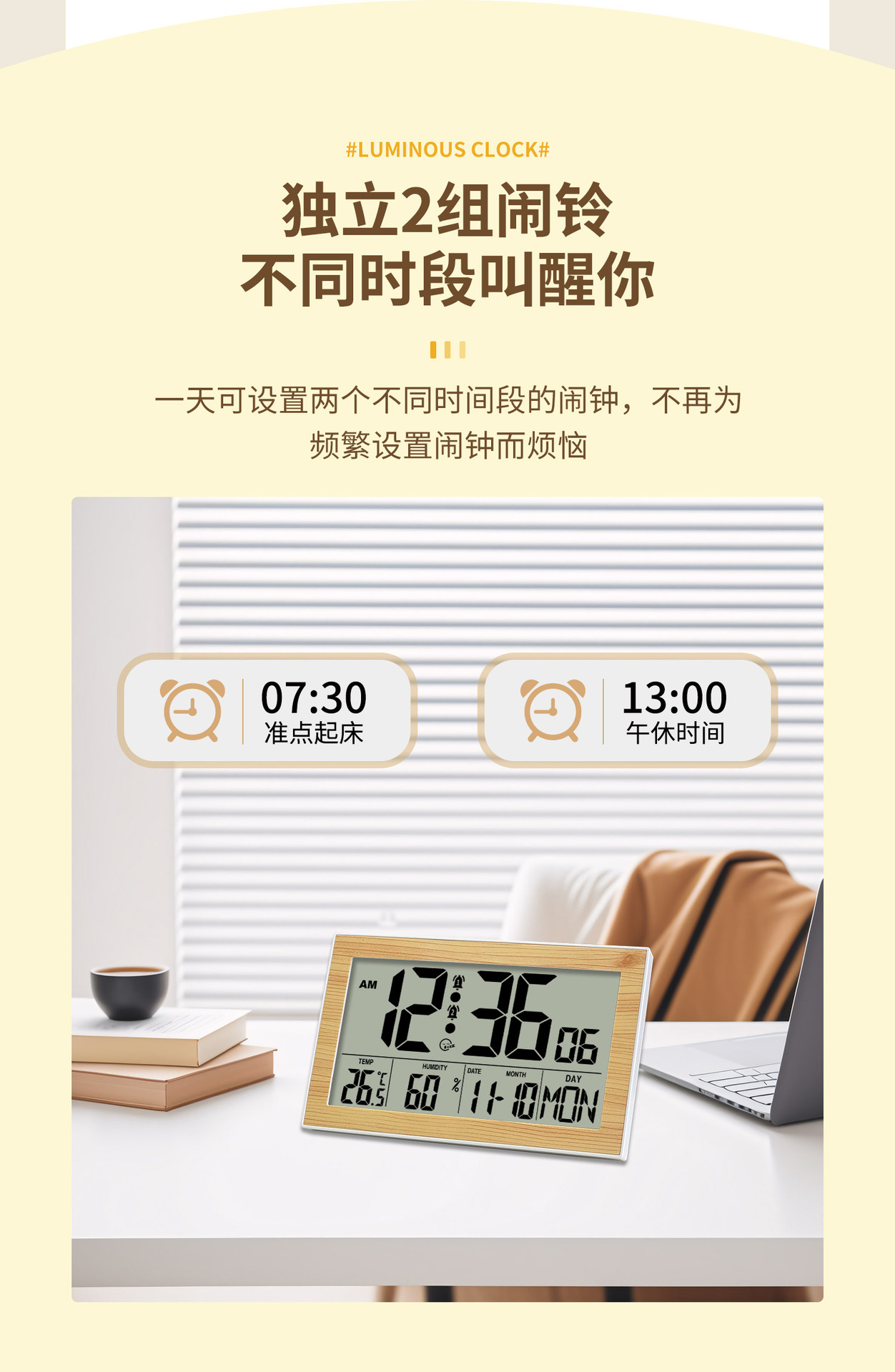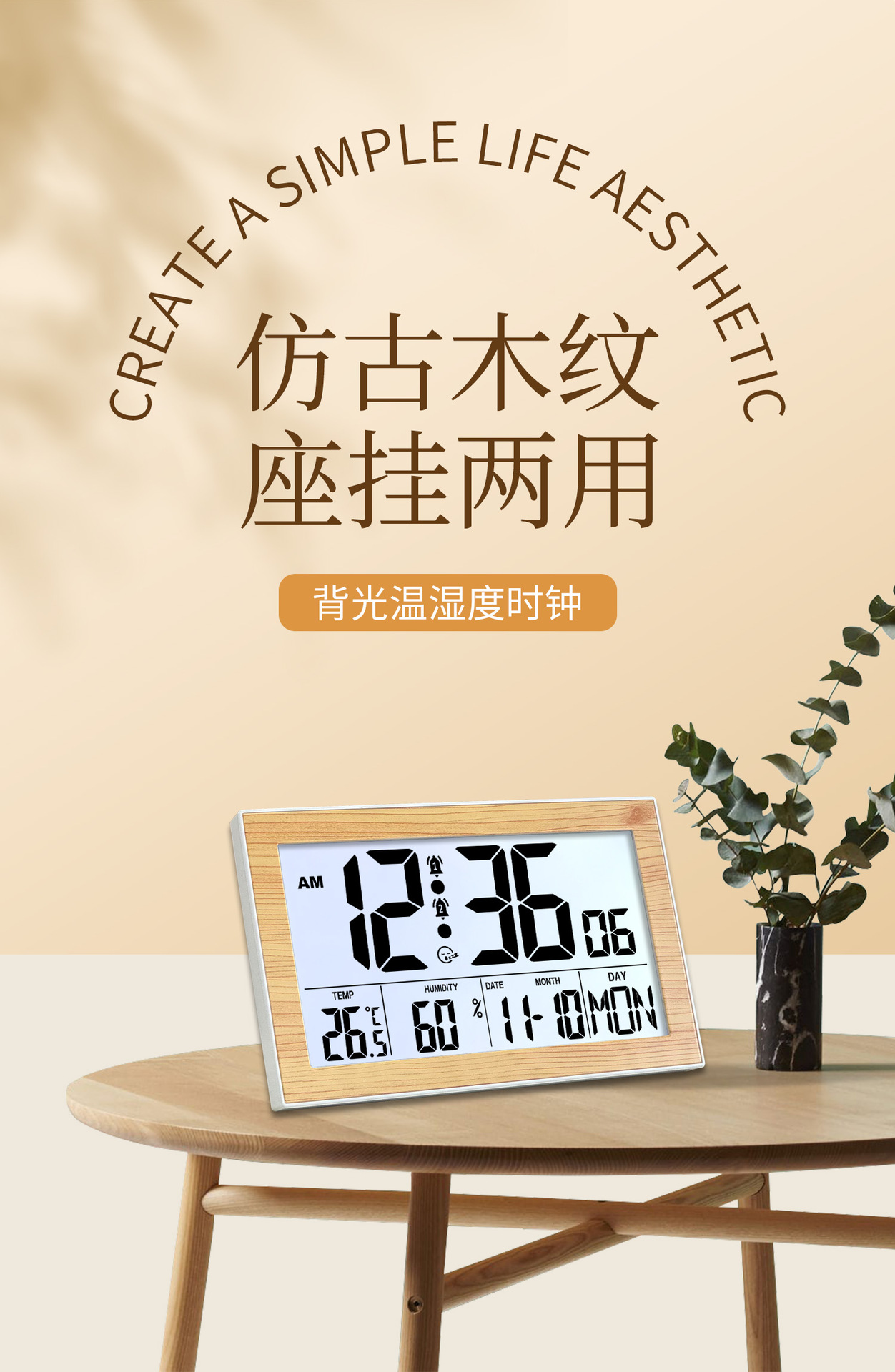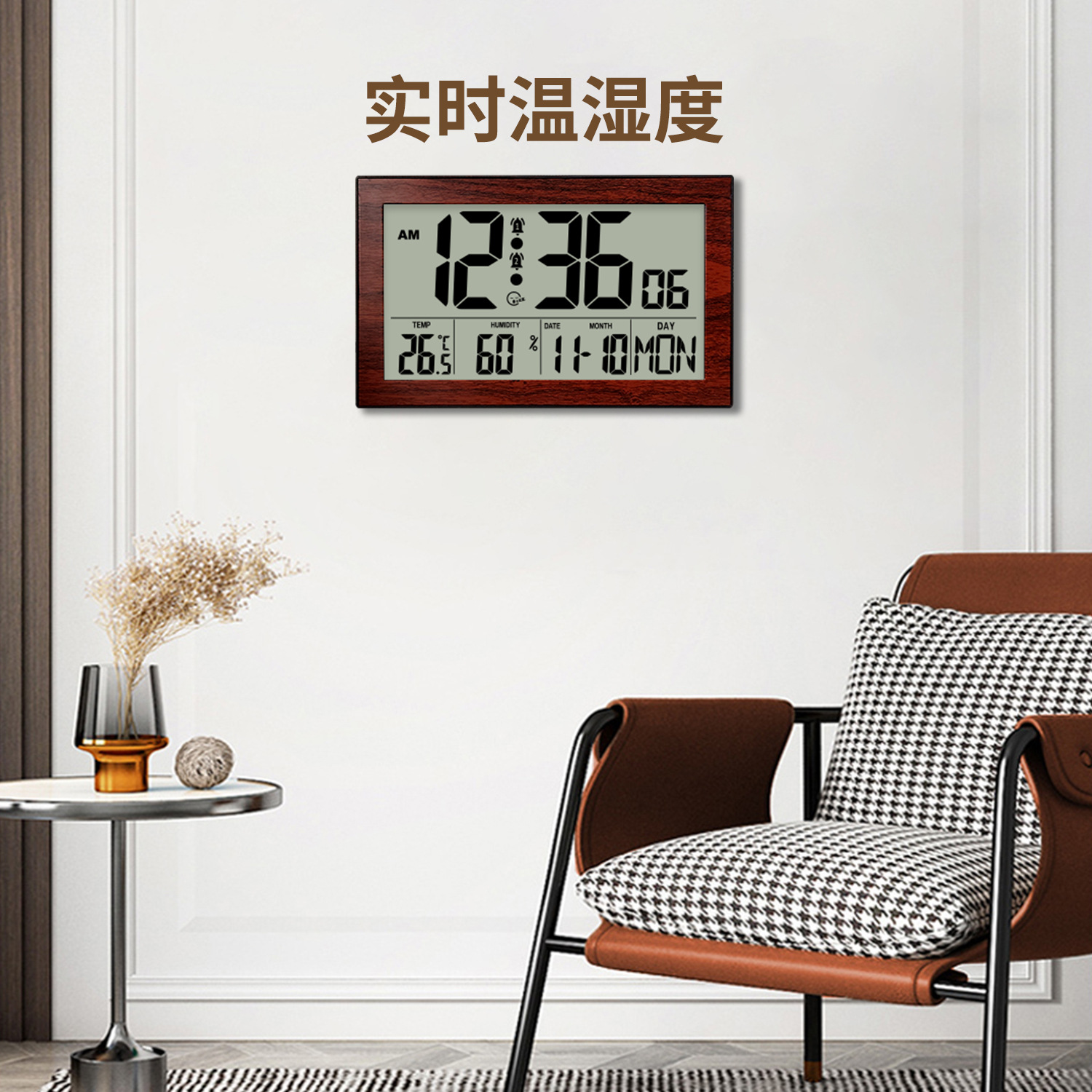 客厅电子钟声控夜光挂钟温湿度闹钟简约创意桌面家用台钟
