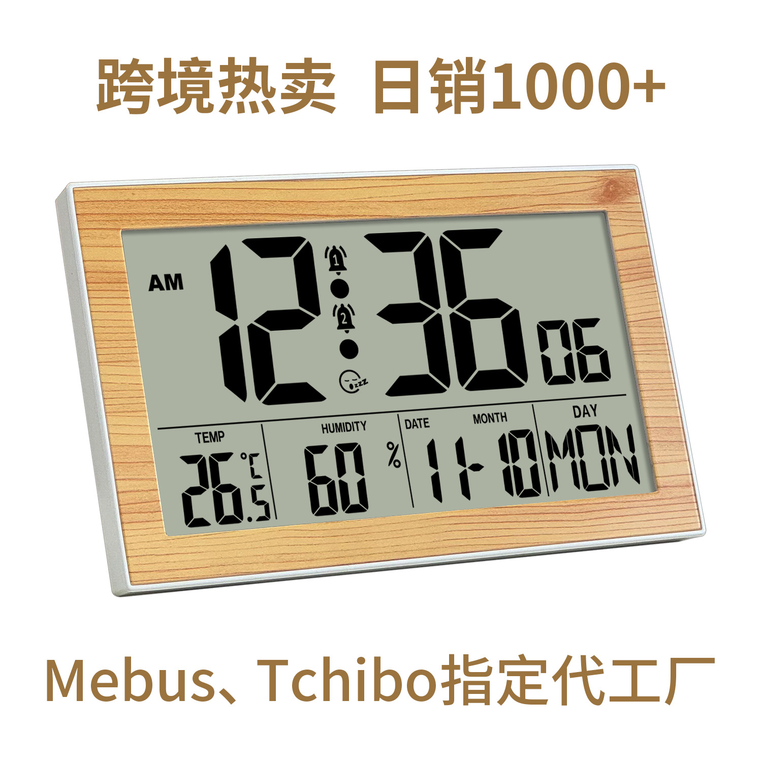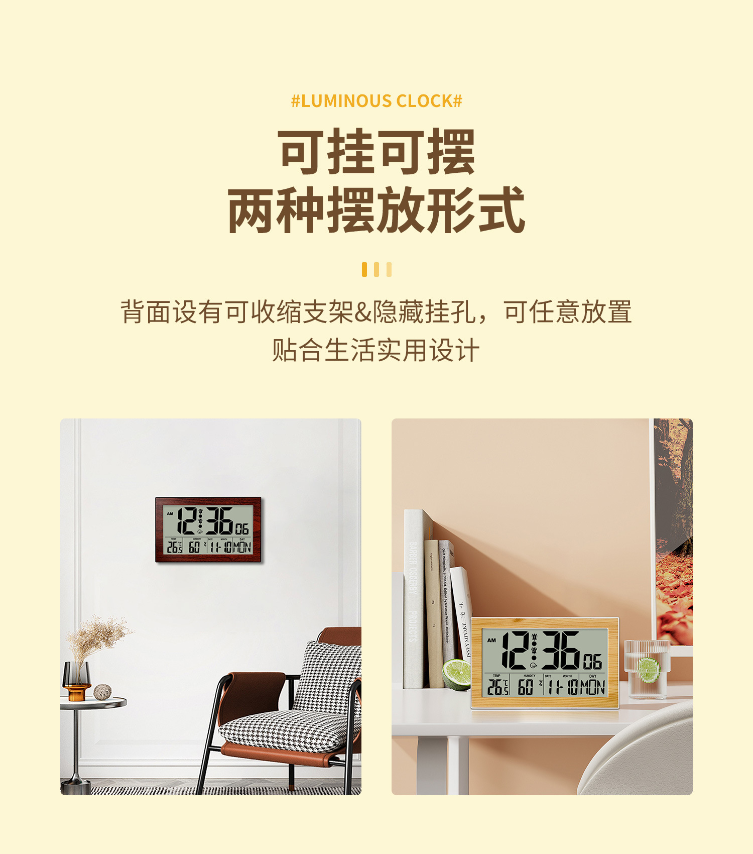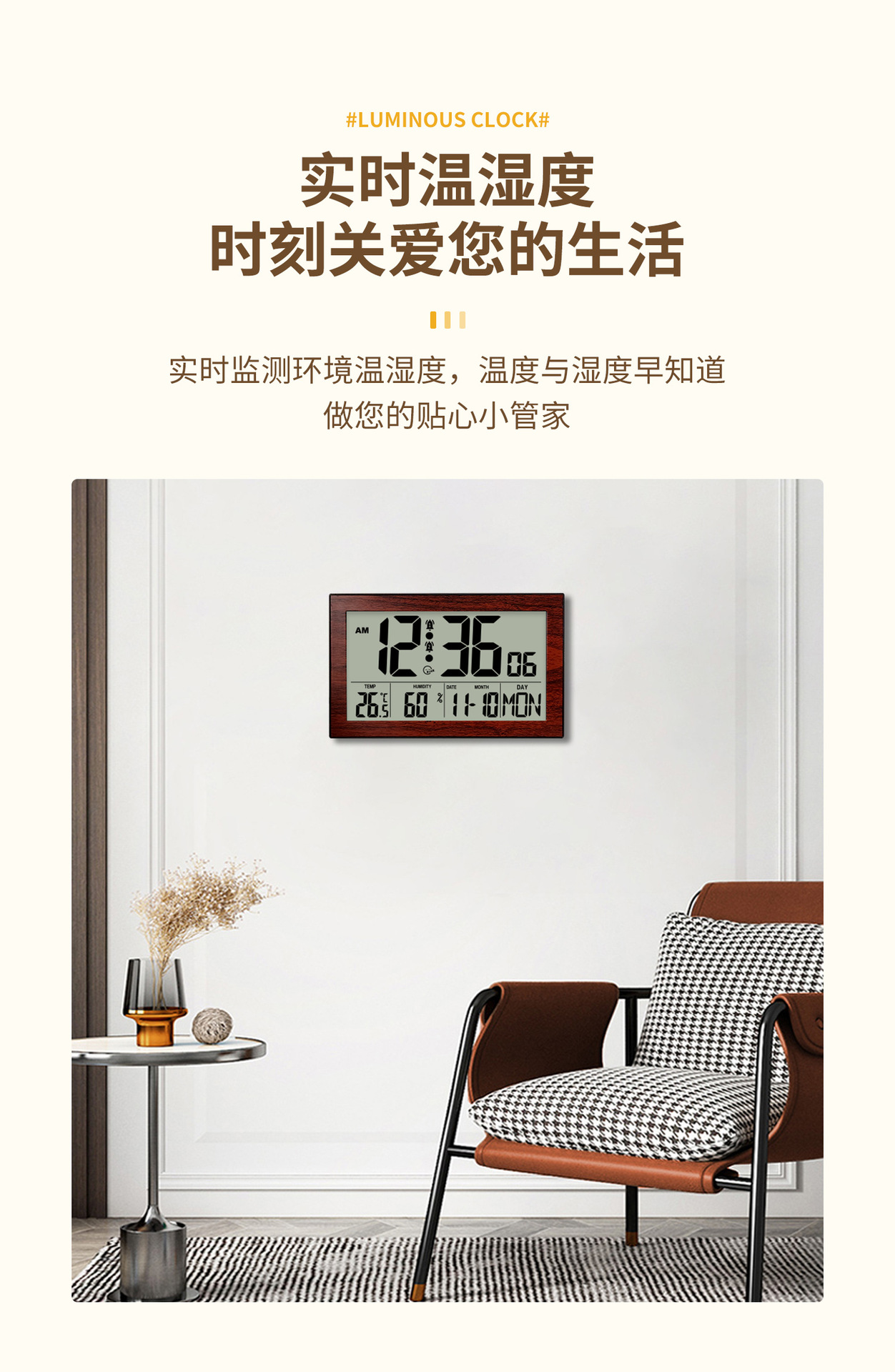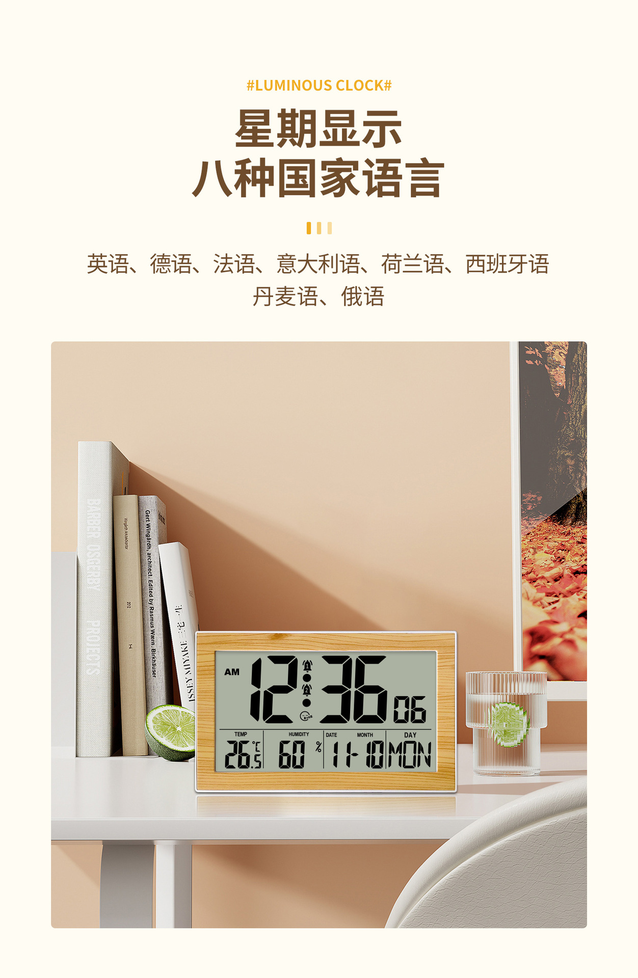 客厅电子钟声控夜光挂钟温湿度闹钟简约创意桌面家用台钟