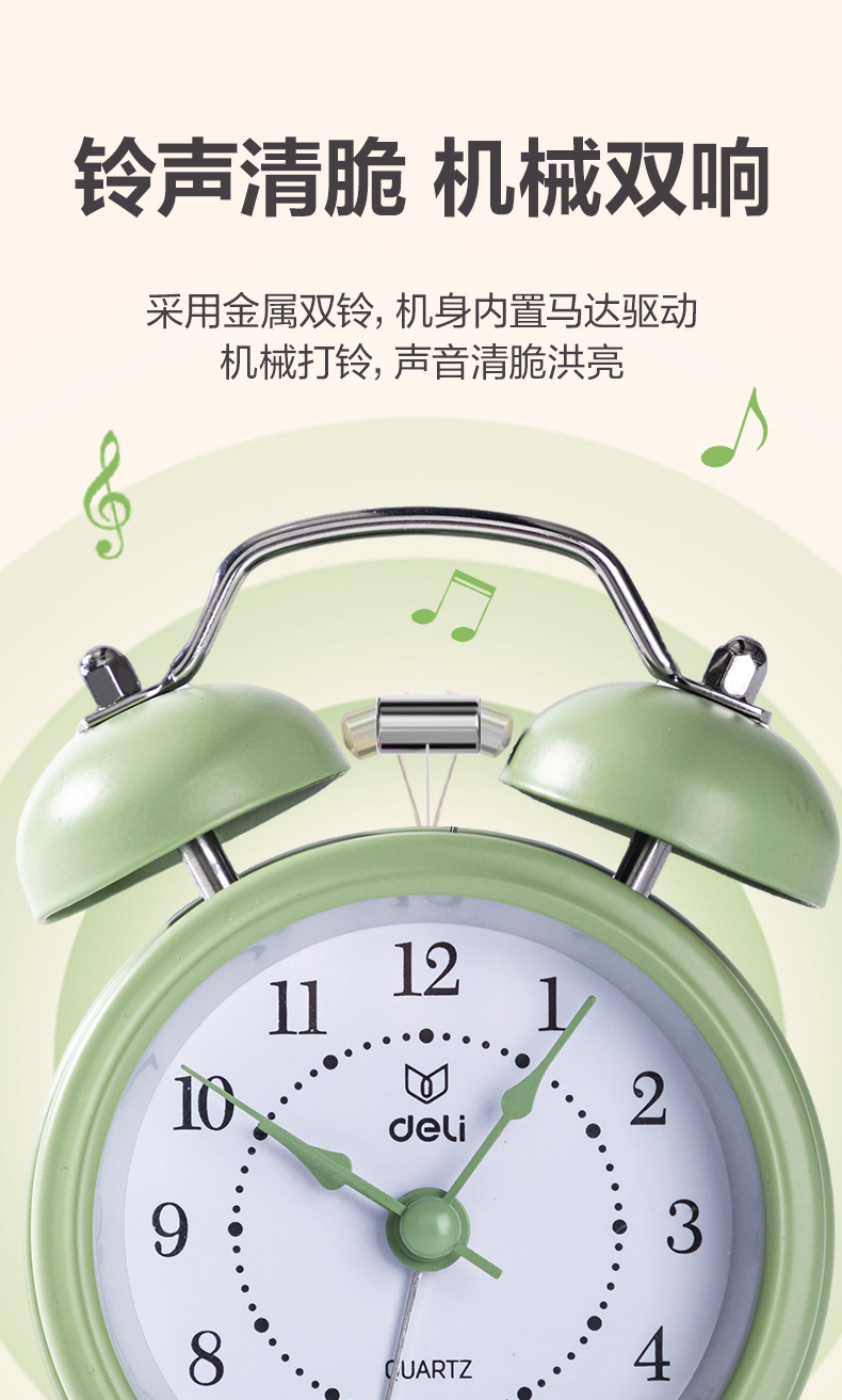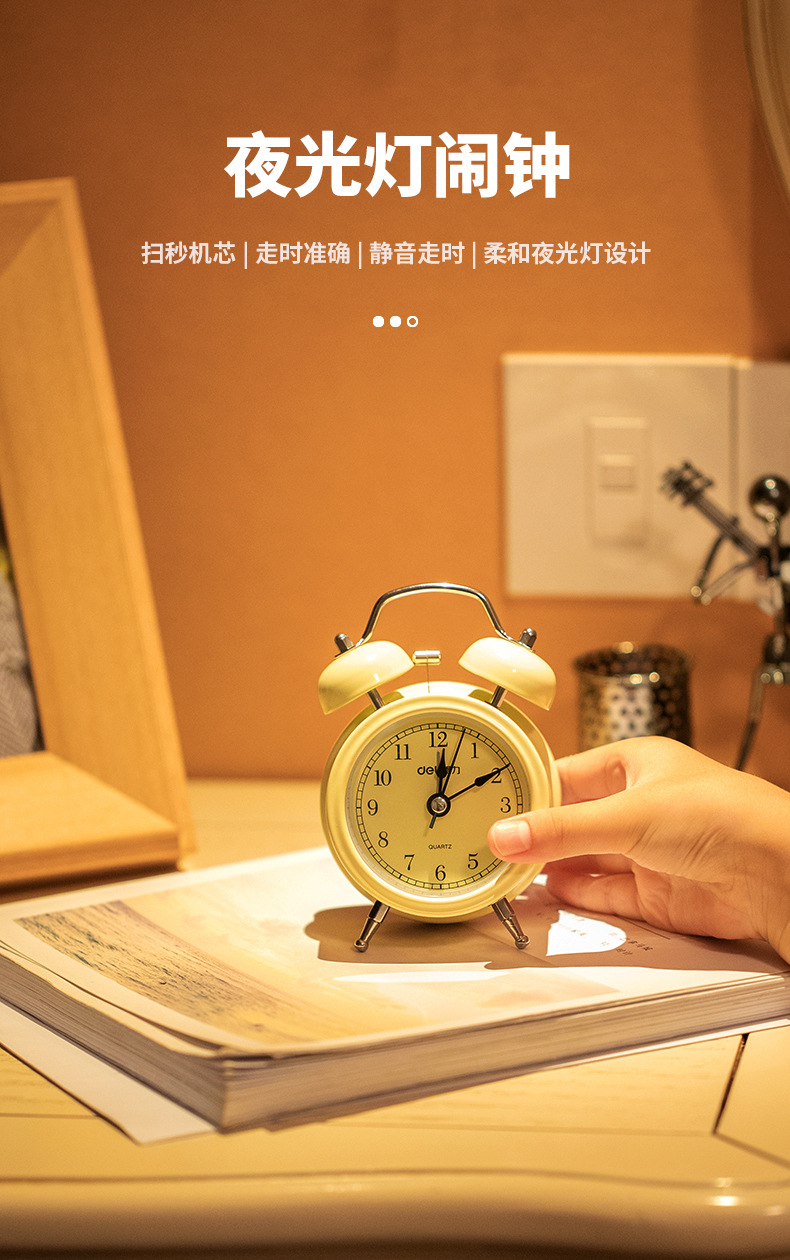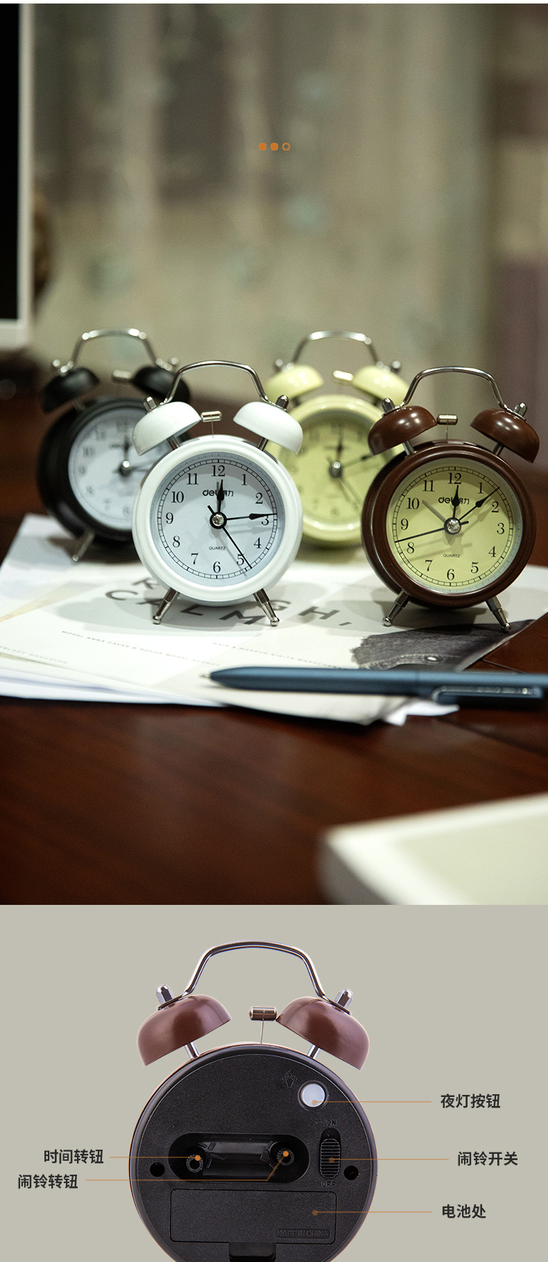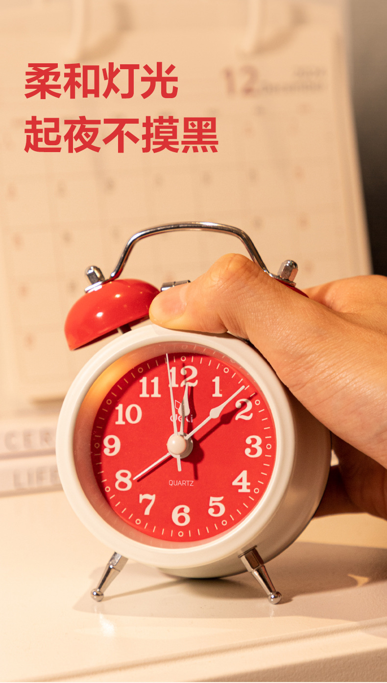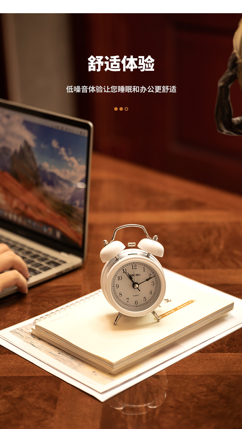 复古儿童卧室打铃闹钟办公夜光静音电池指针走时闹钟