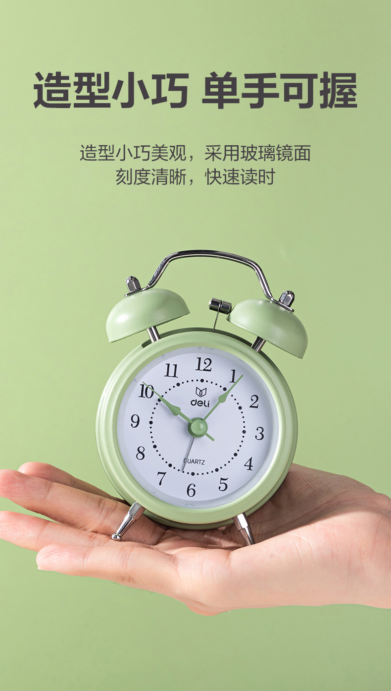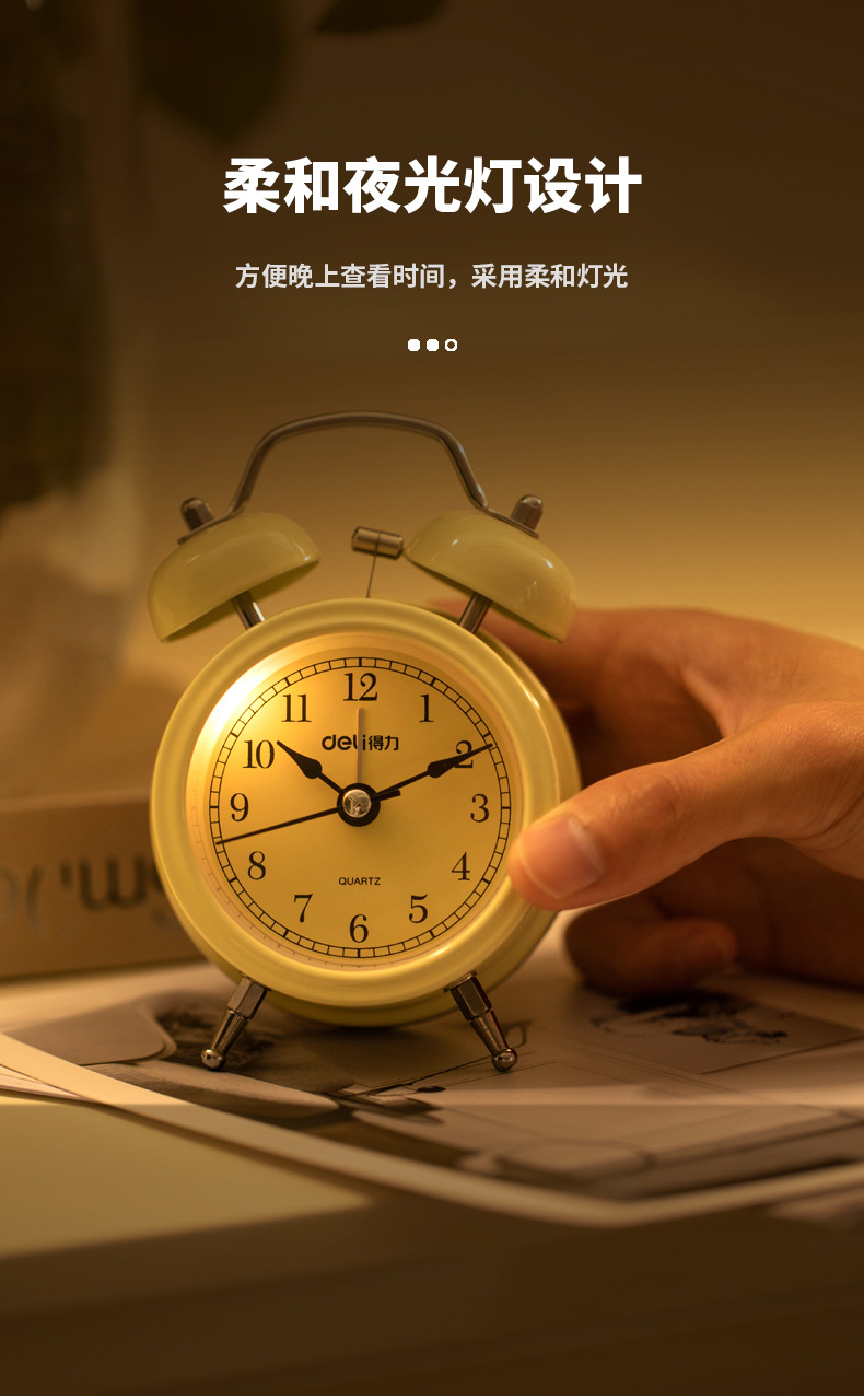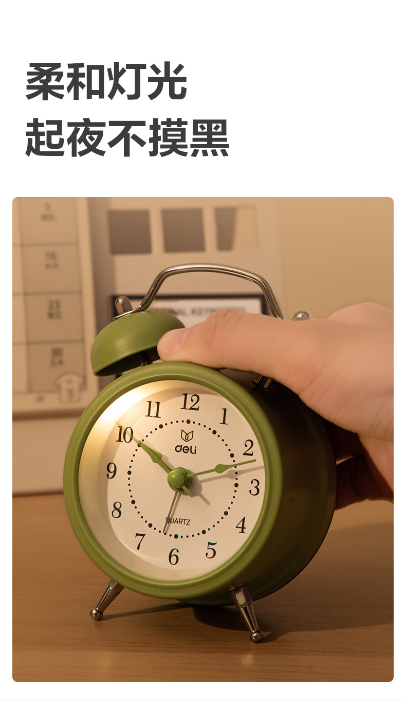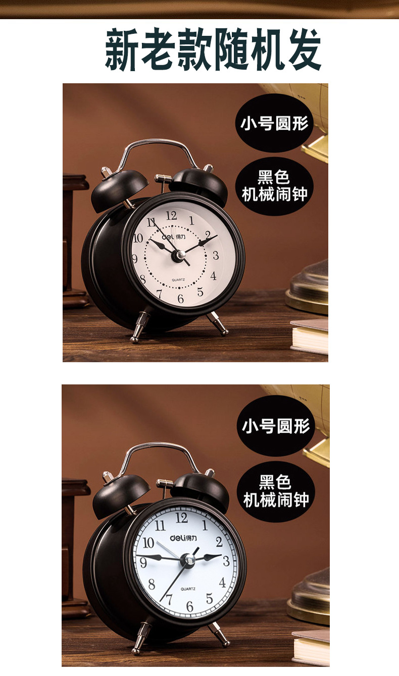 复古儿童卧室打铃闹钟办公夜光静音电池指针走时闹钟
