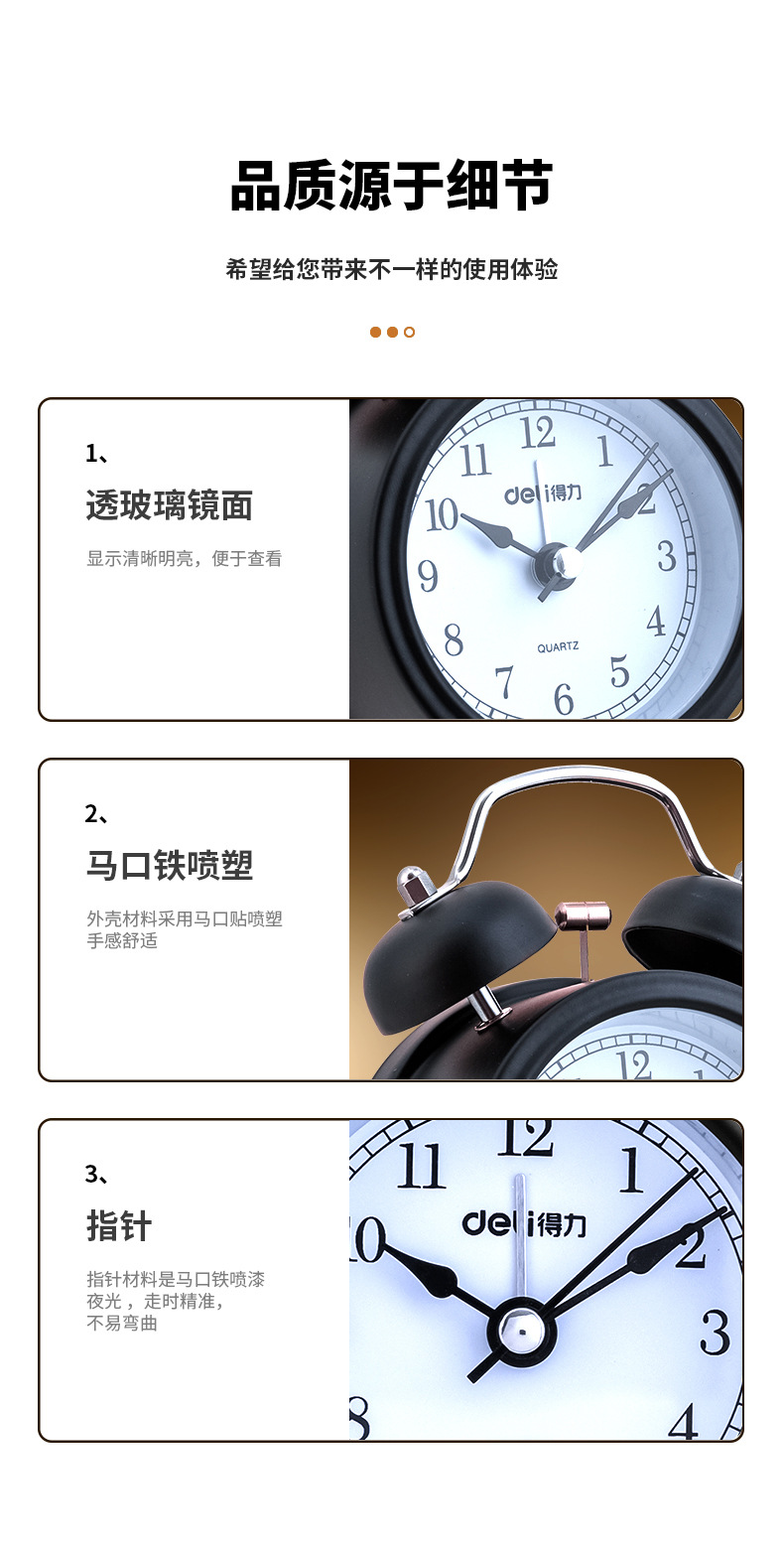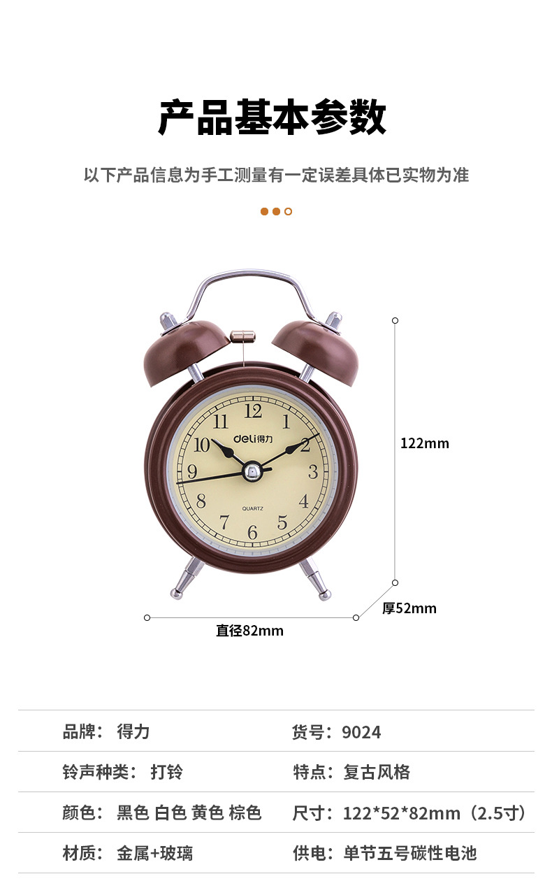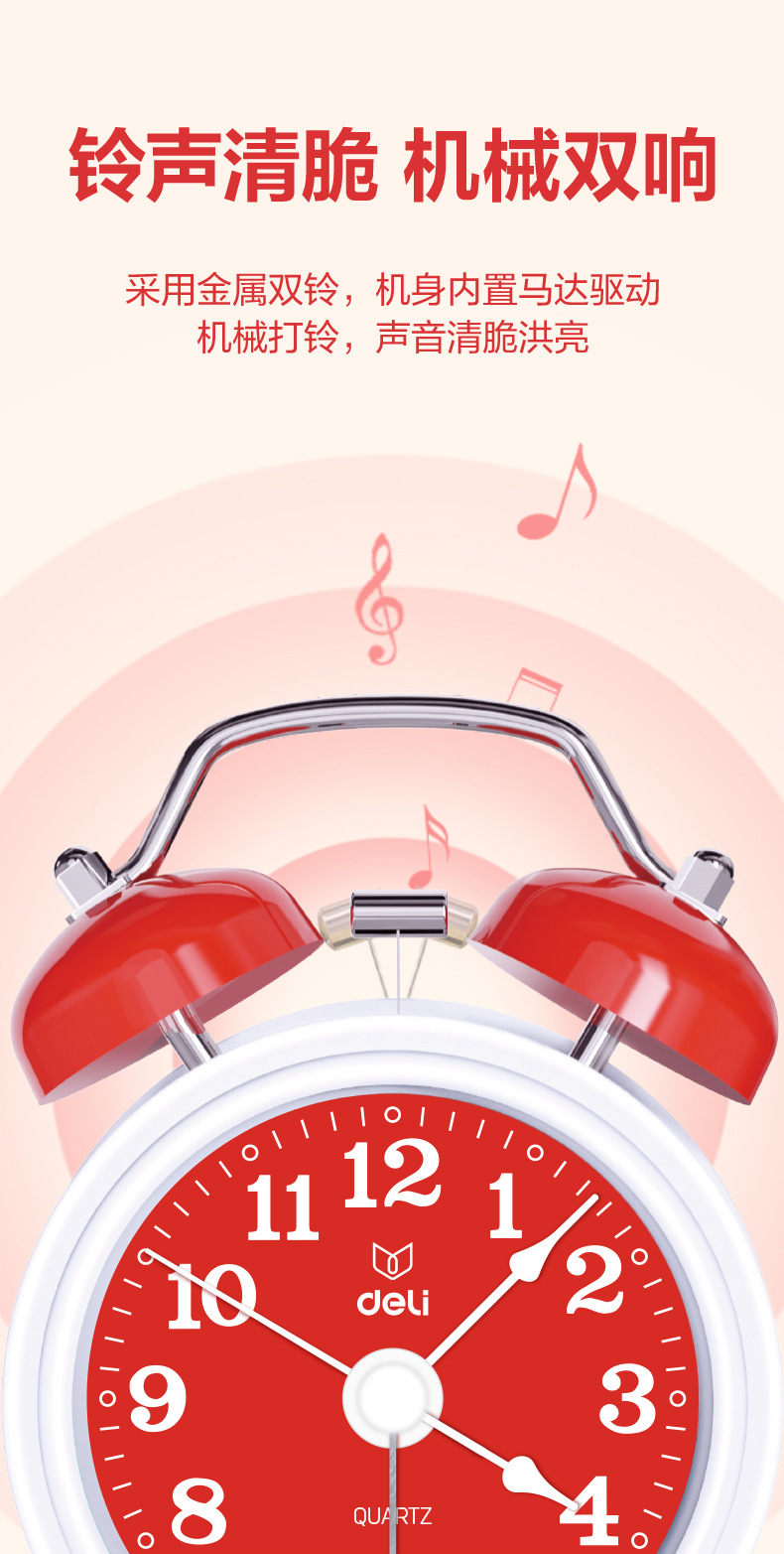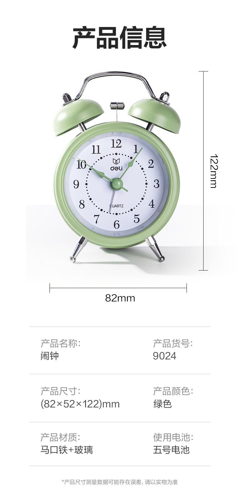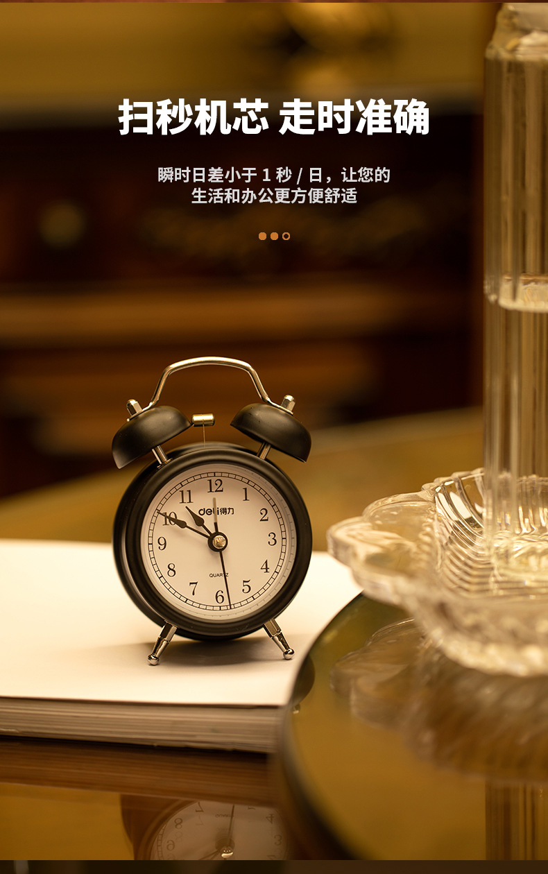 复古儿童卧室打铃闹钟办公夜光静音电池指针走时闹钟