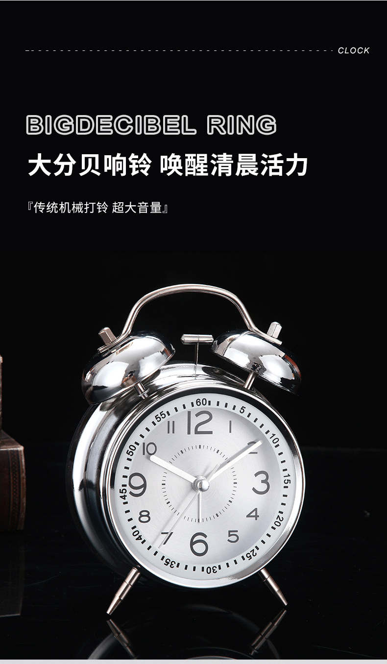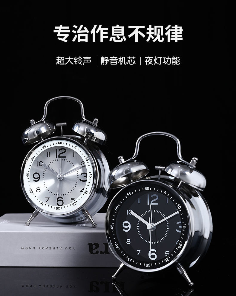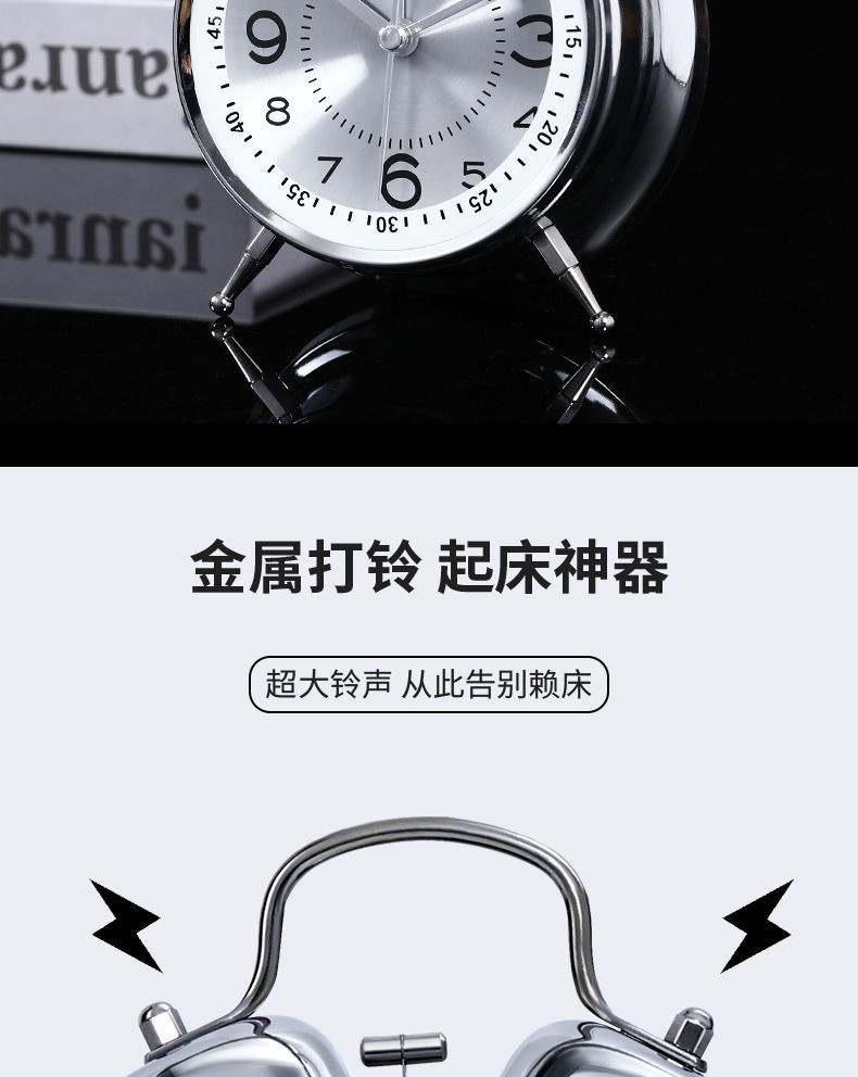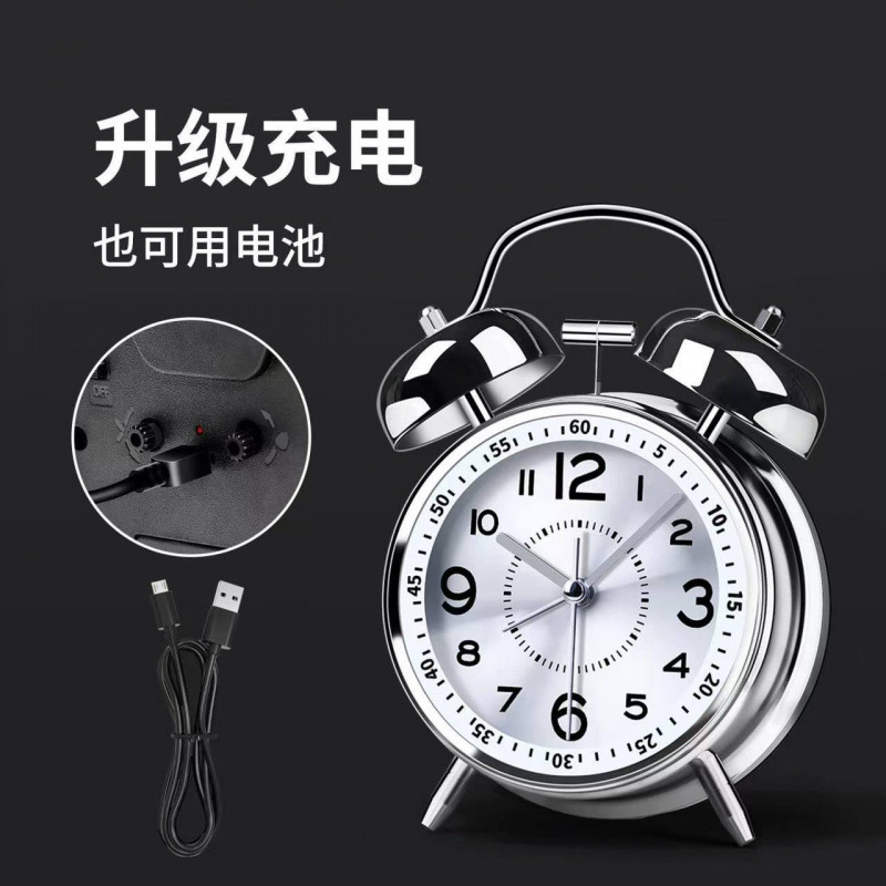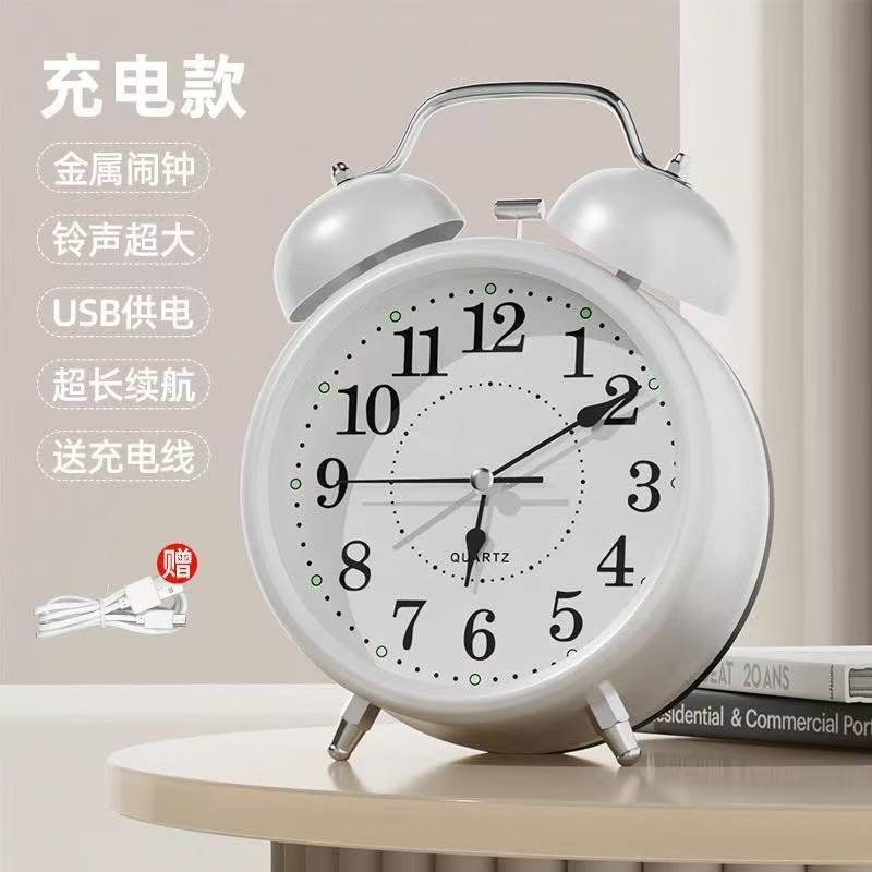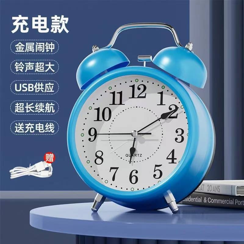 闹钟学生声2025新款夜光金属打铃充电式起床防摔耐用