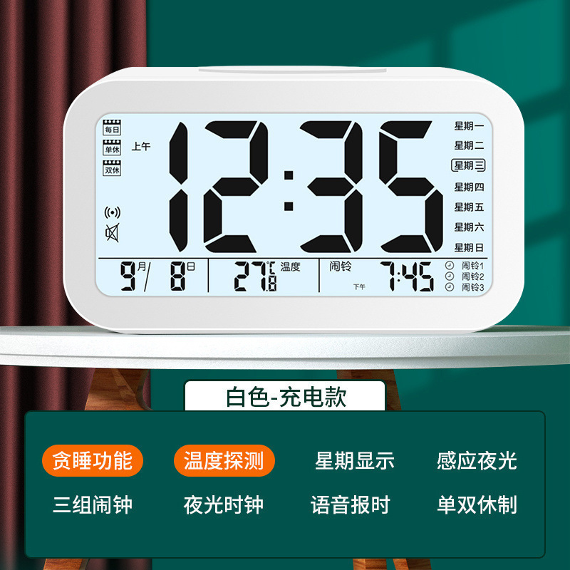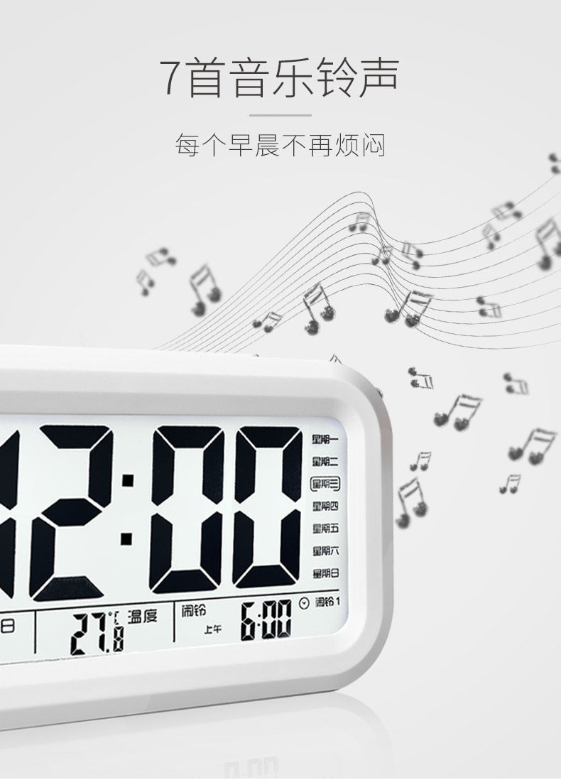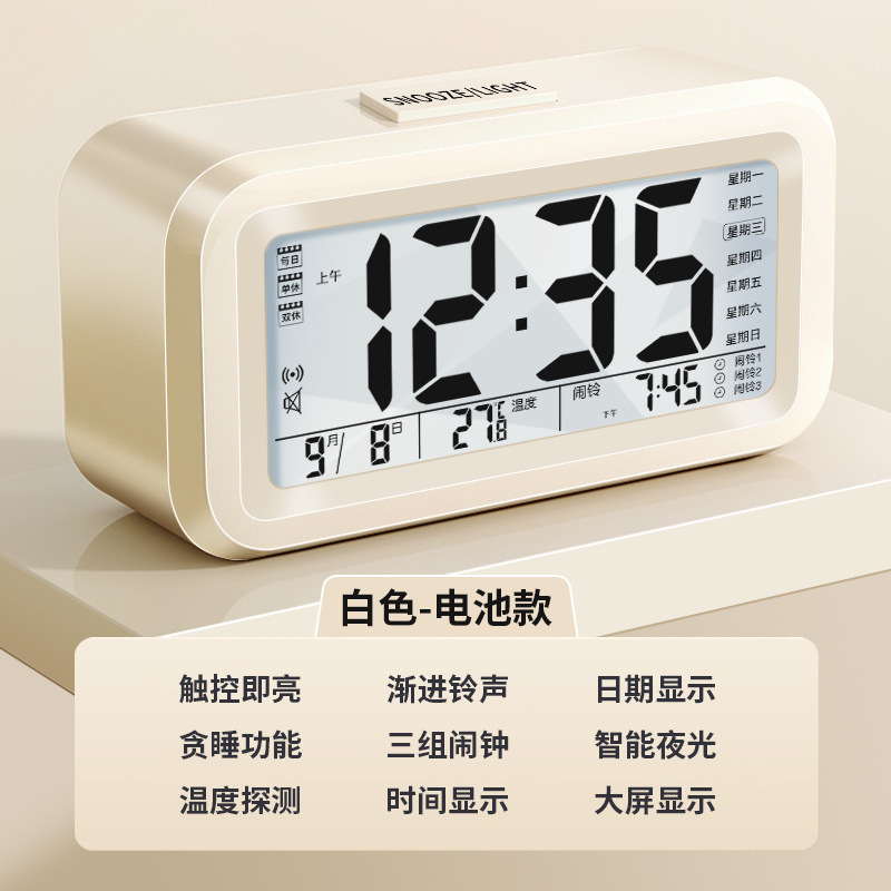 - 白色-温湿度款【七大功能+大音量+单双休】