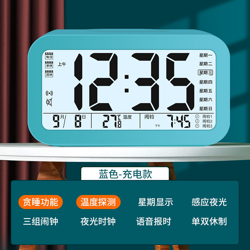 - 蓝色-USB充电款+六大功能+三组闹钟