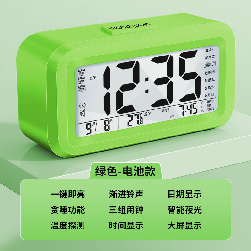 - 绿色-智能电池款【三组闹钟+6大功能】