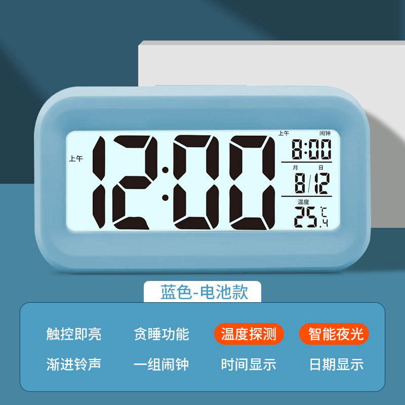 - 蓝色-智能电池款【三组闹钟+6大功能】