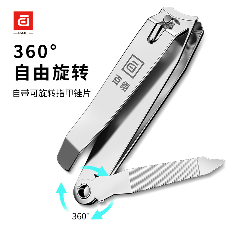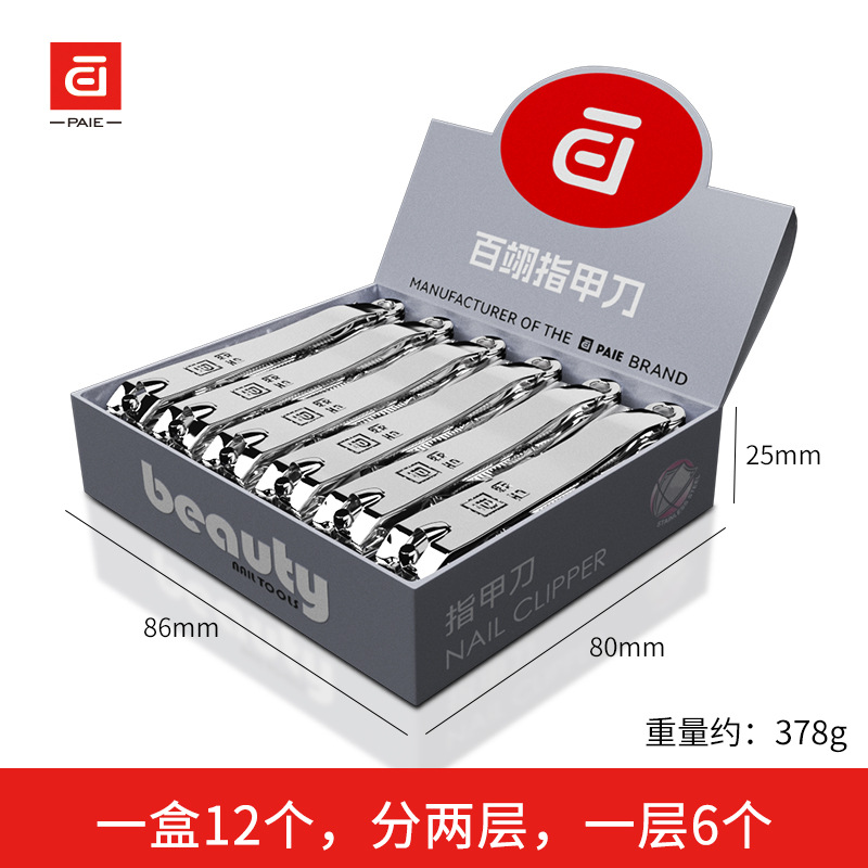 PAIE百翊不锈钢指甲钳12个盒装家用单个指甲刀平口大号强人指甲剪
