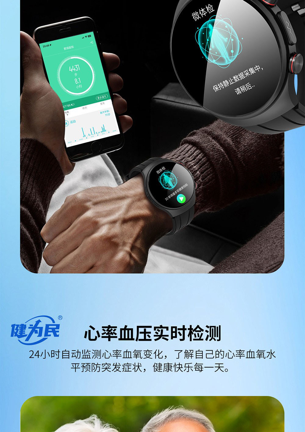 手表血压监测多功能电子手表男智能手表睡眠健康监测手表运动手环