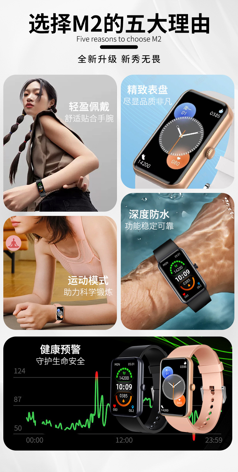 M2长续航防水运动智能手表 NFC蓝牙男女健康监测智能手环