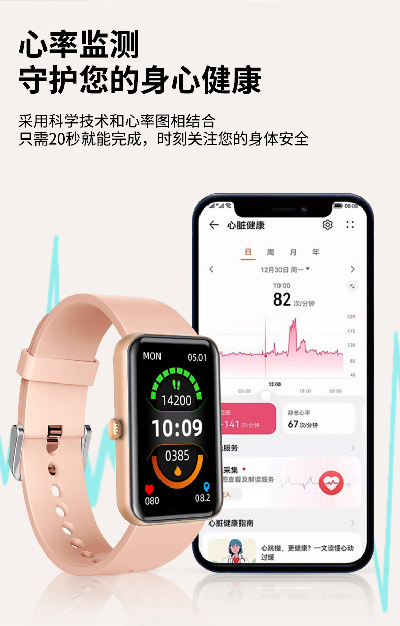 C60智能运动手环适用血压心率监测三防防水计步睡眠提醒蓝牙通话