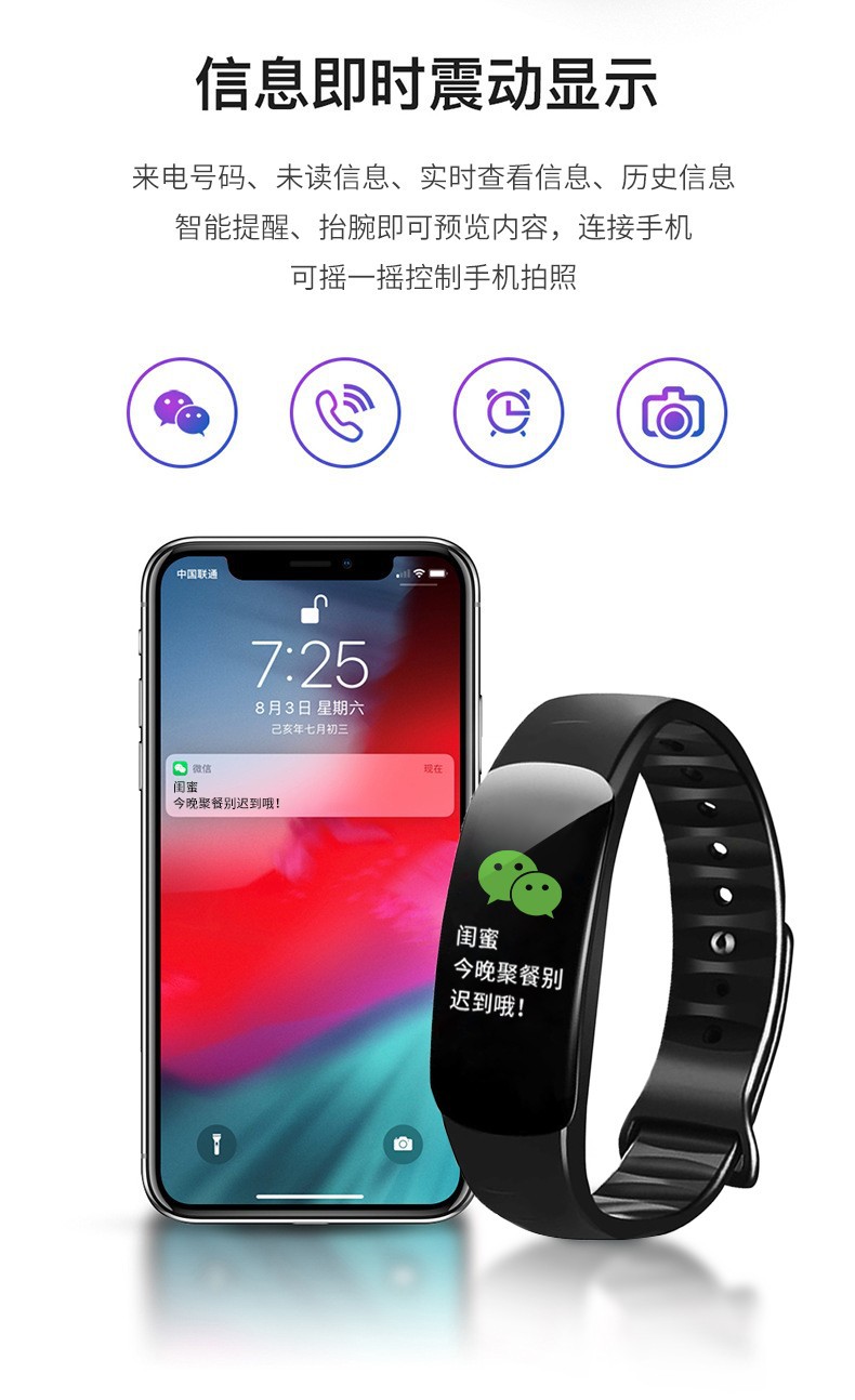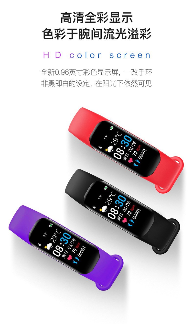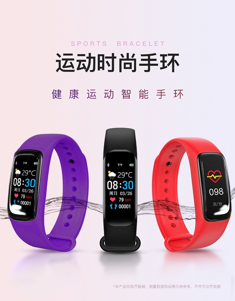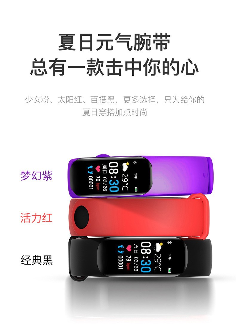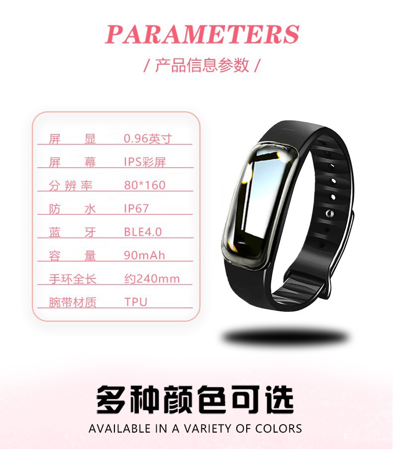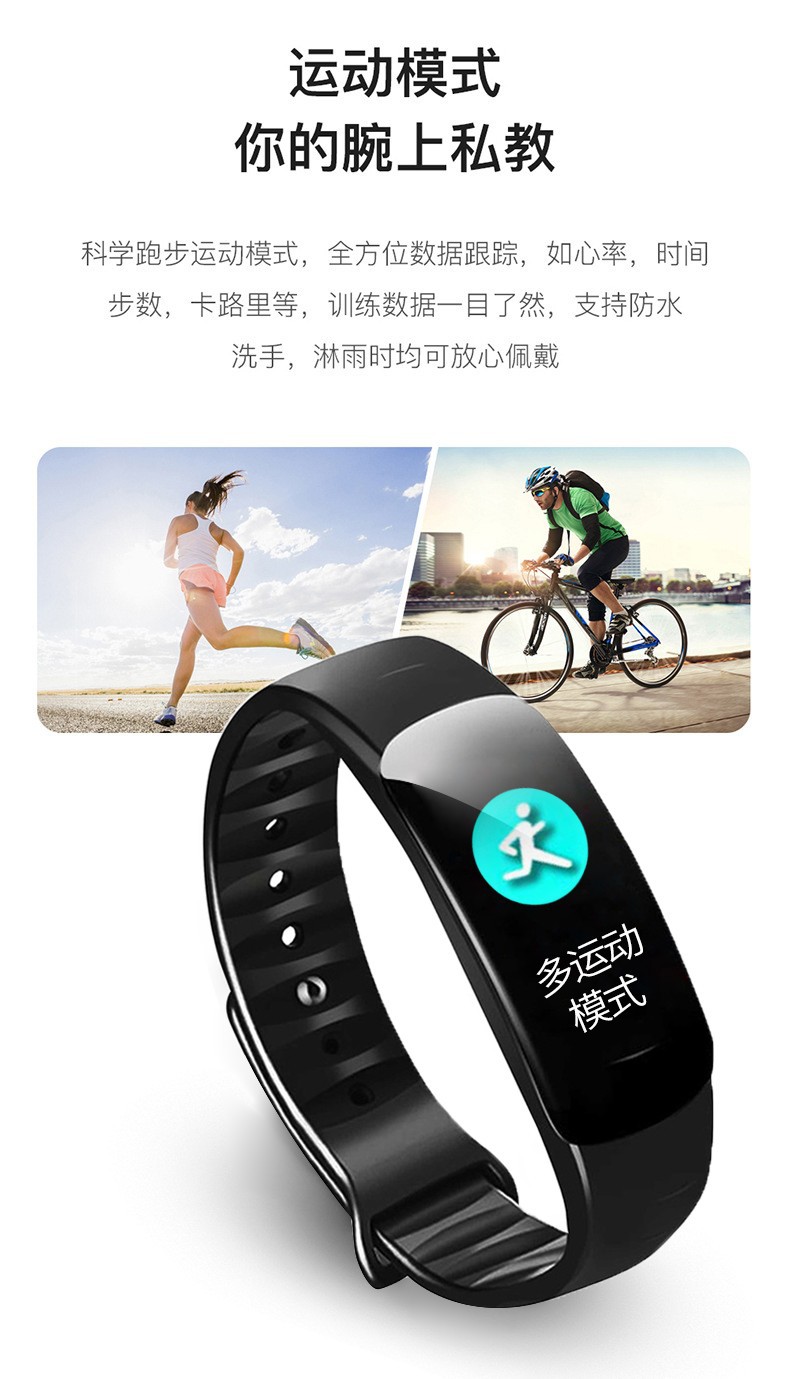 C60智能运动手环适用血压心率监测三防防水计步睡眠提醒蓝牙通话
