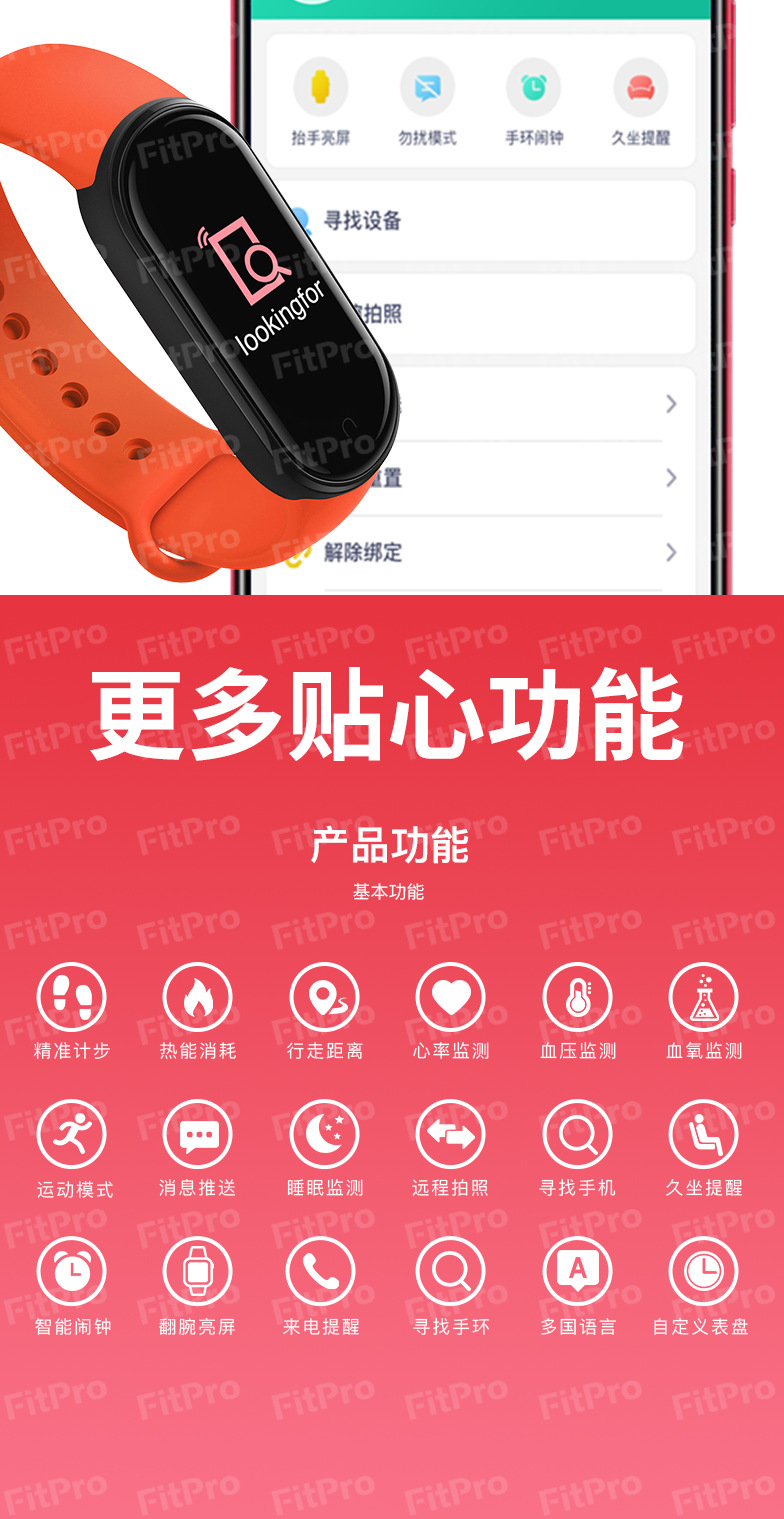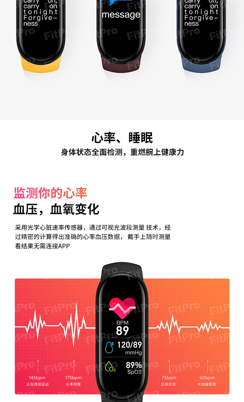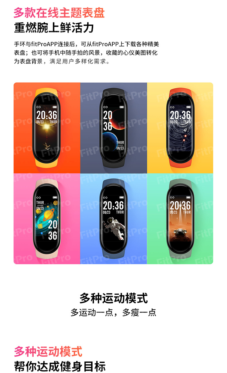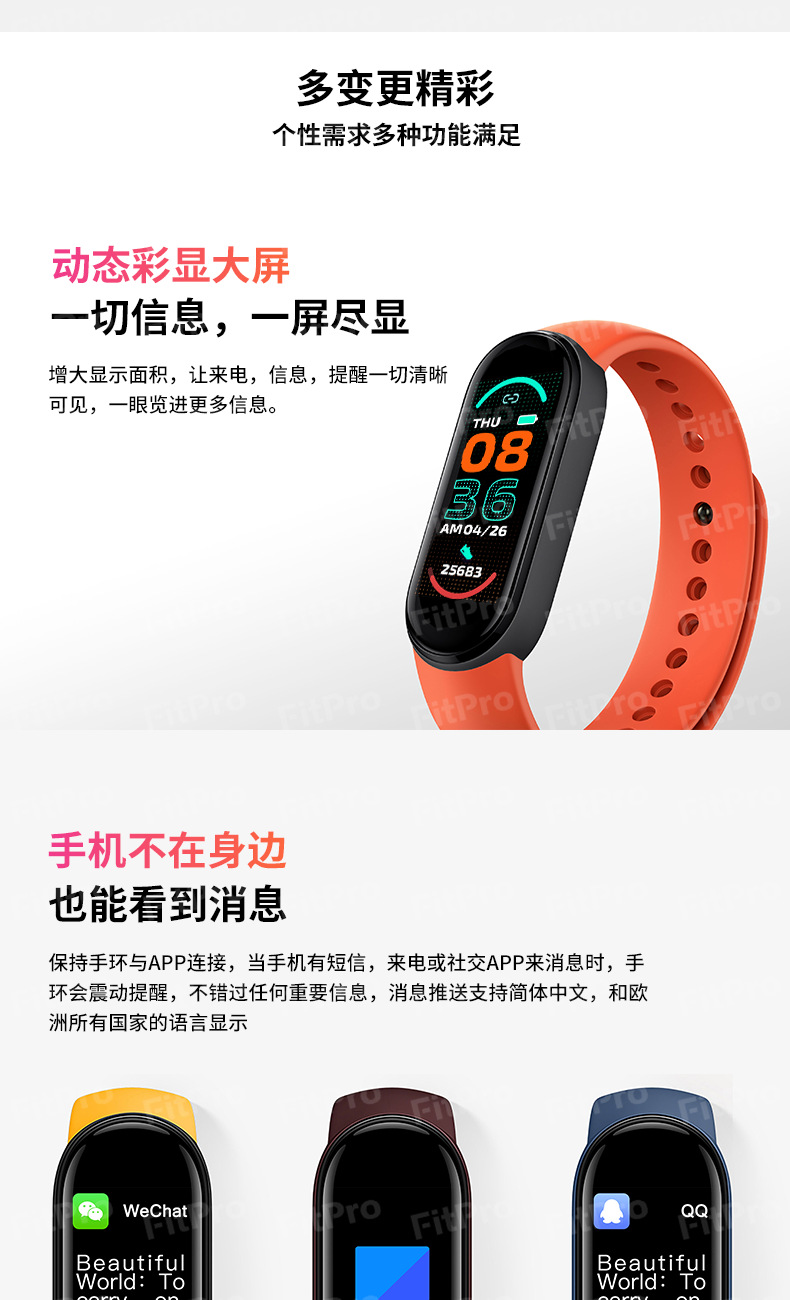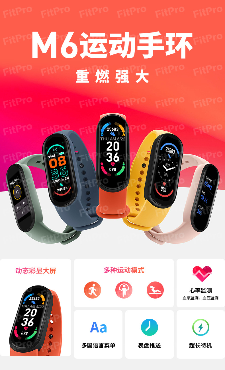 M6智能手环彩屏运动健康计步手环心率血压睡眠音乐监测新款