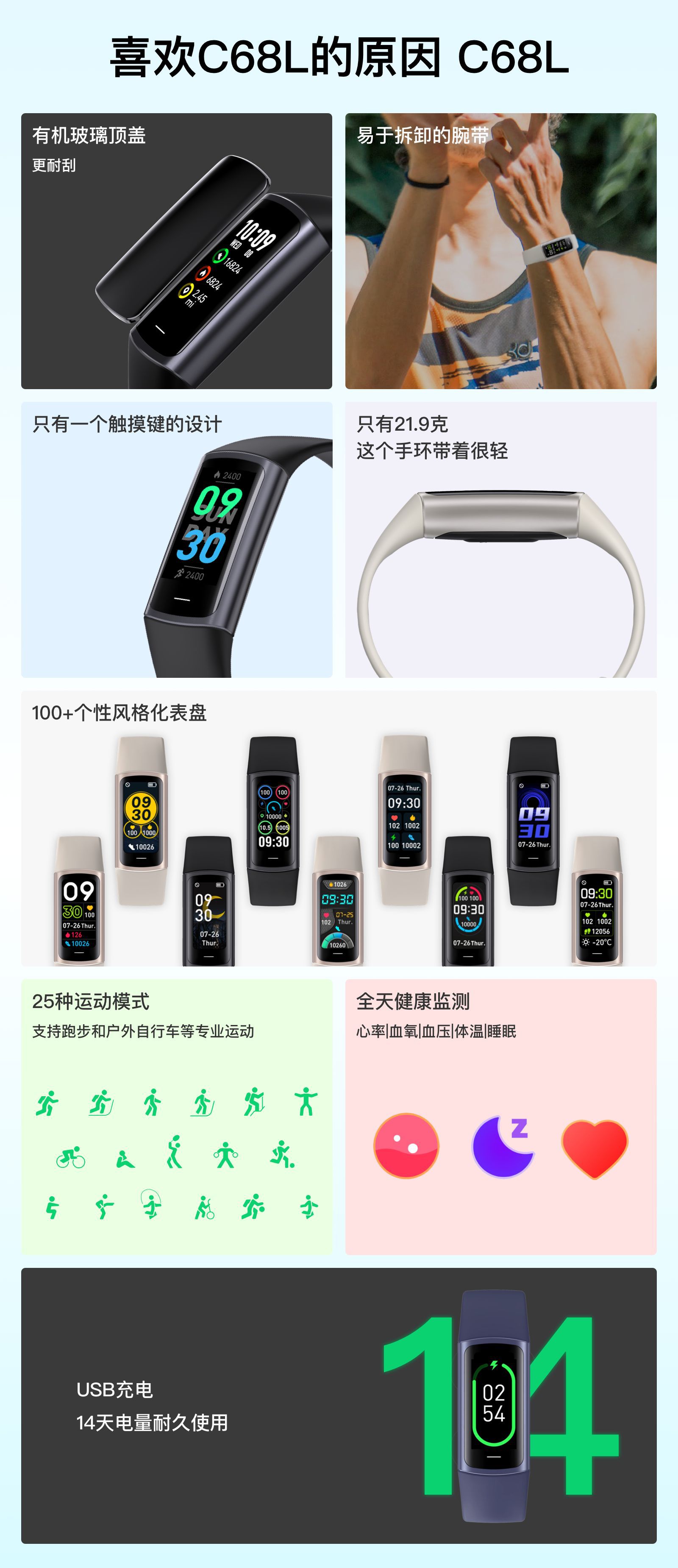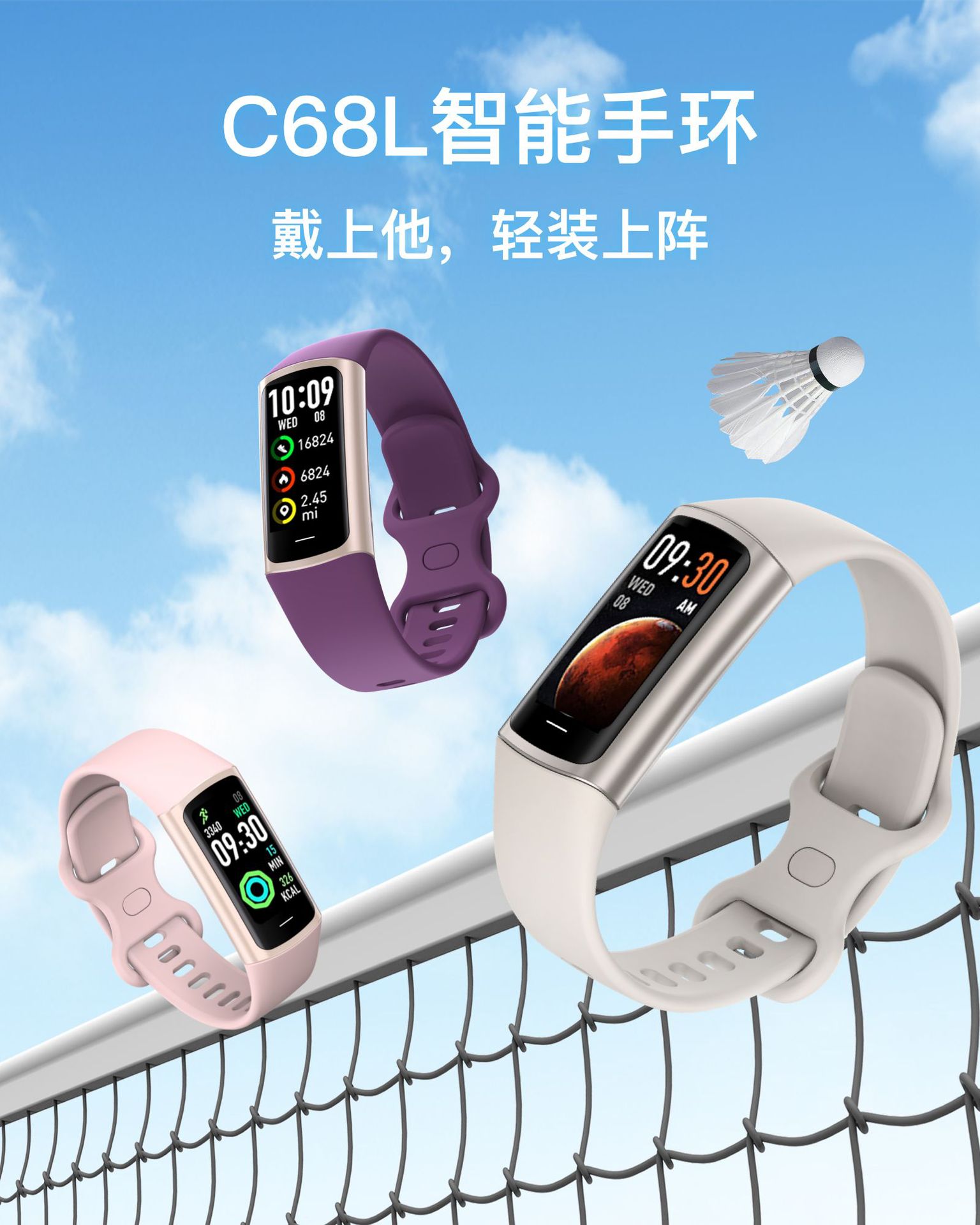 热款C68L智能手环测心率量血氧手环跑步监测消息推送长续航手