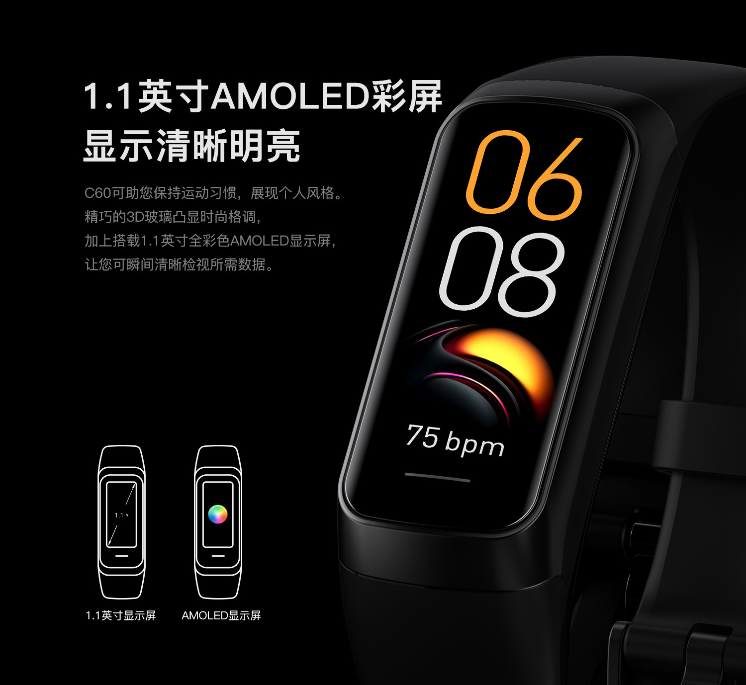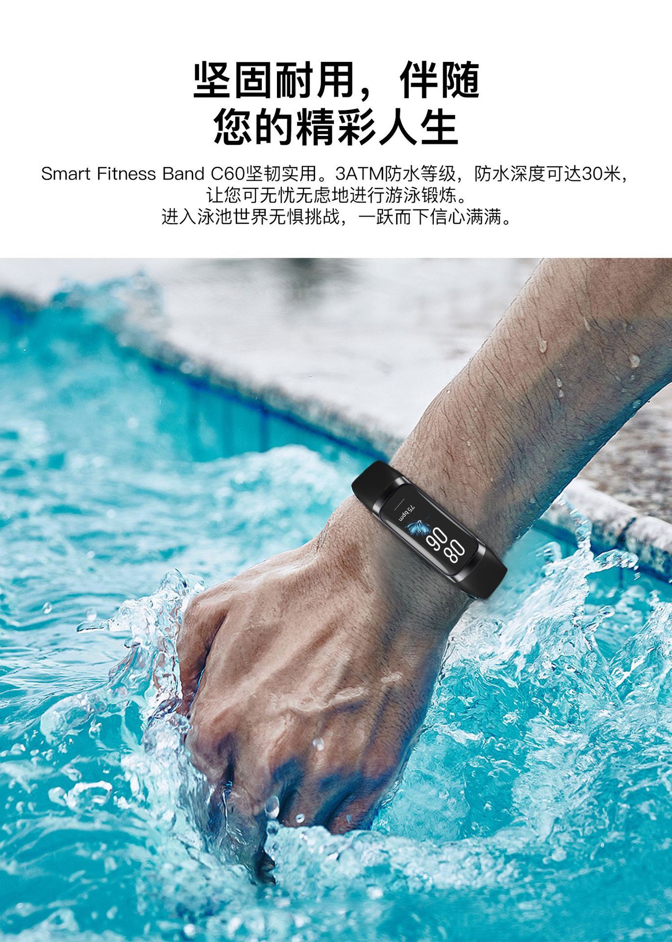 C60智能运动手环适用血压心率监测三防防水计步睡眠提醒蓝牙通话