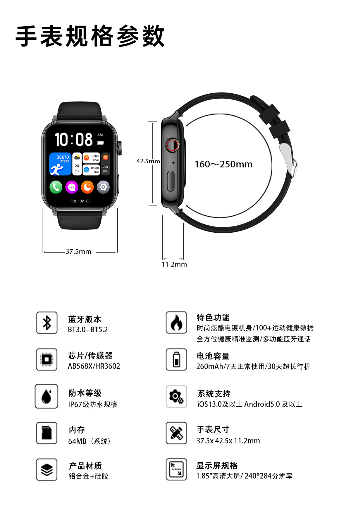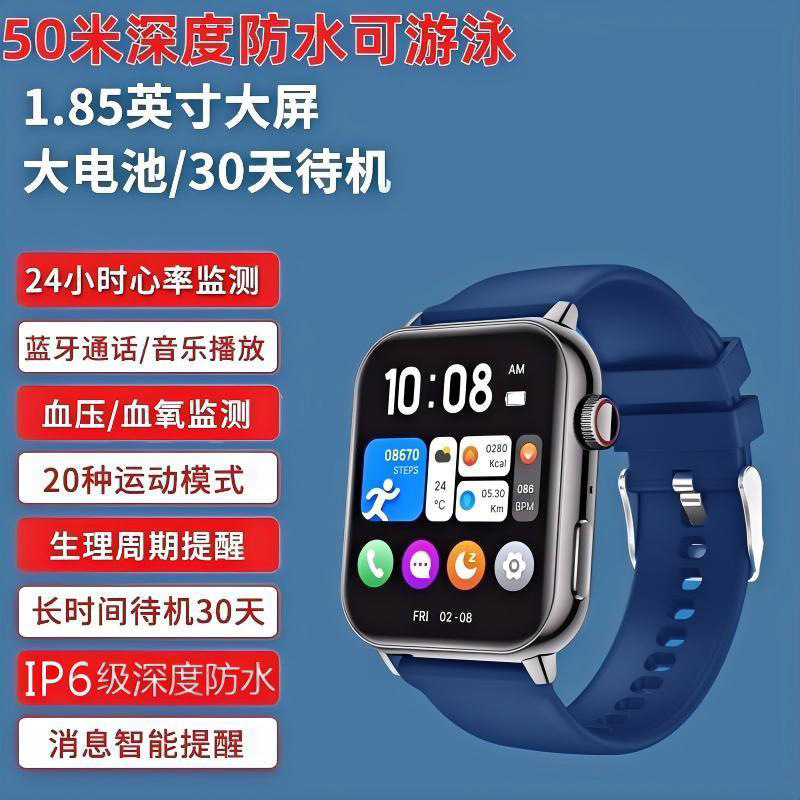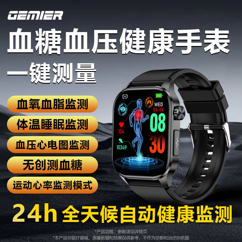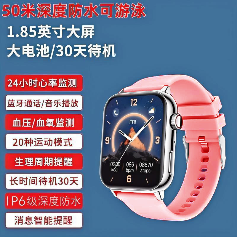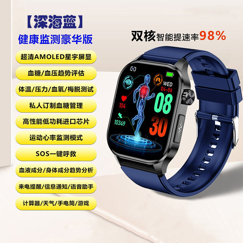 新款AI语音智能游泳运动手表无创测血糖心率尿酸通话NFC支付手环