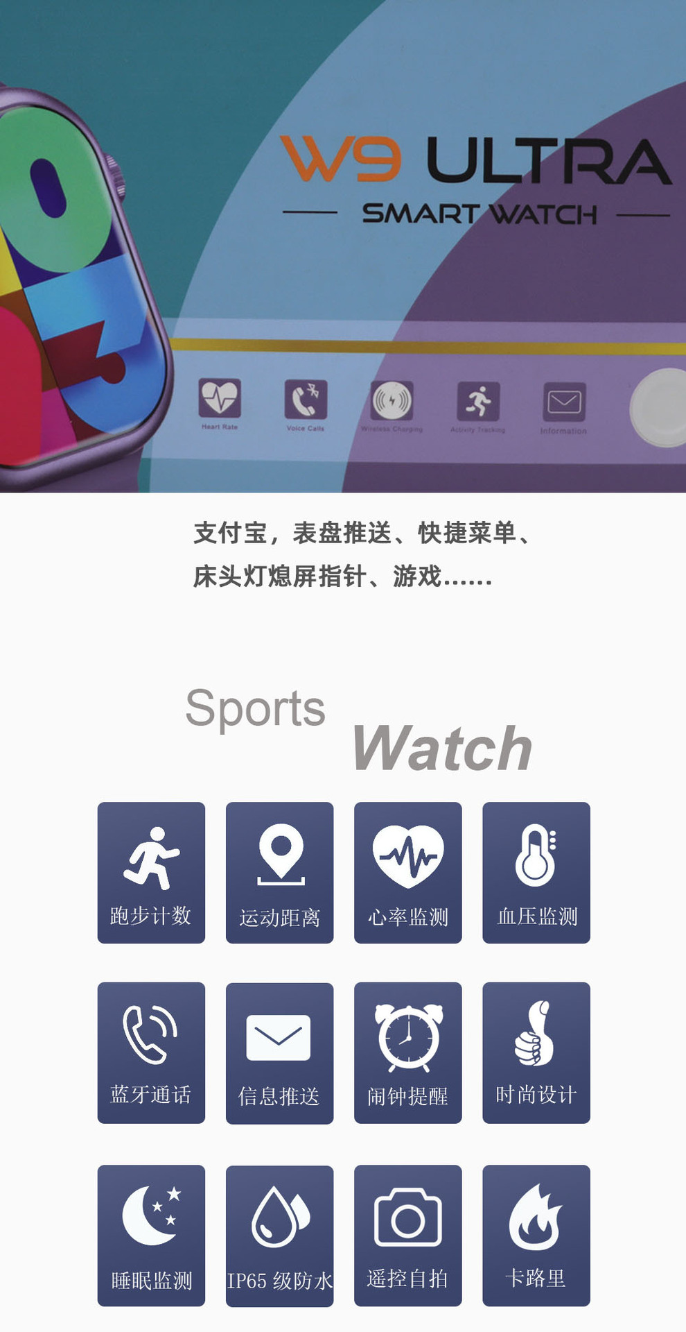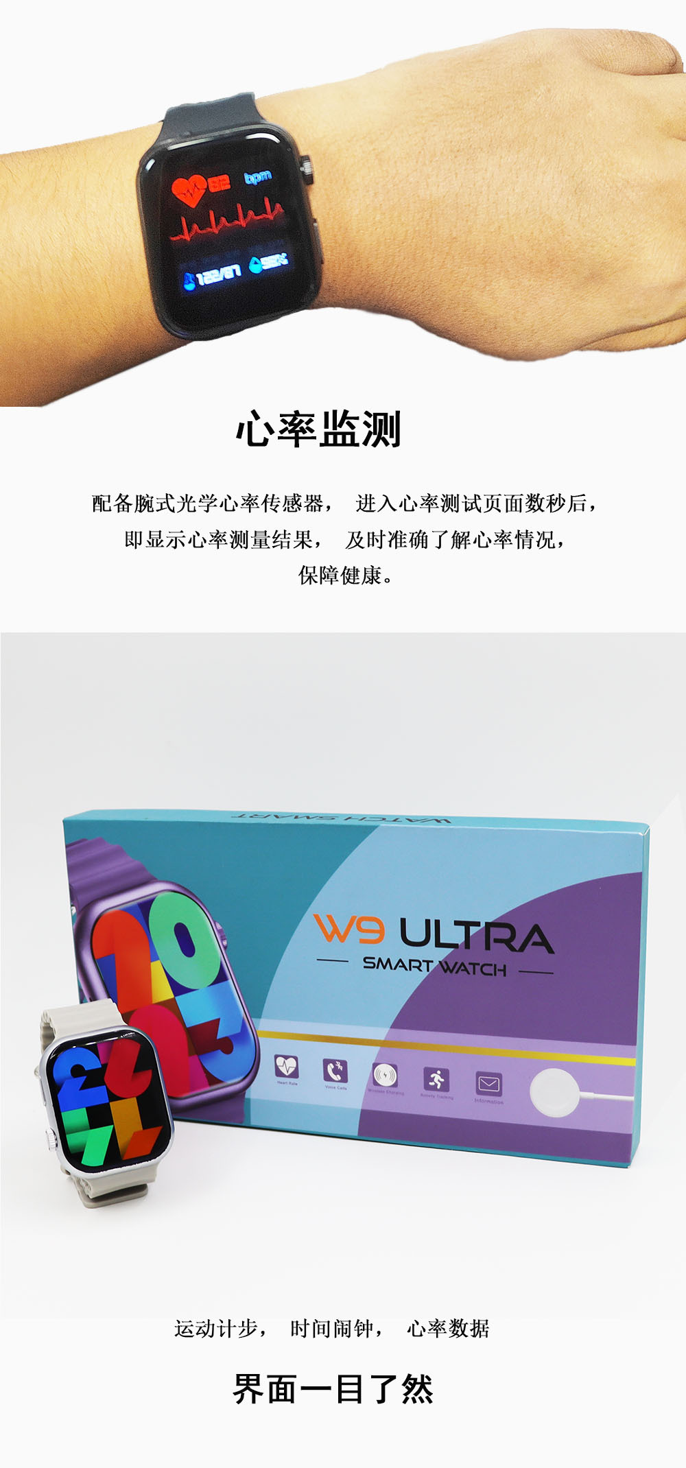 W9ultra高配款智能手表高精度检测心率血压计步灵动岛多功能手环