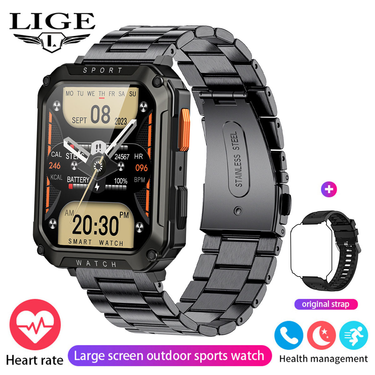 LIGE/利格智能运动防水手表蓝牙多功能血压心率检测手环男士