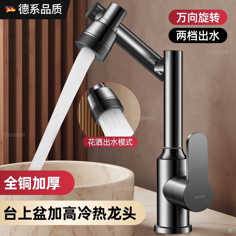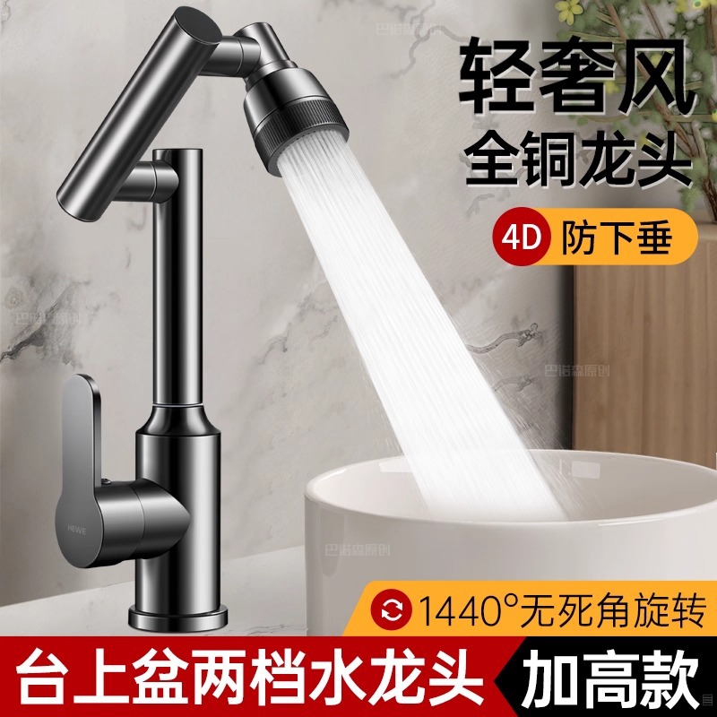 洗脸盆台上盆水龙头冷热两用卫生间面盆加高加长洗手盆万向机械臂