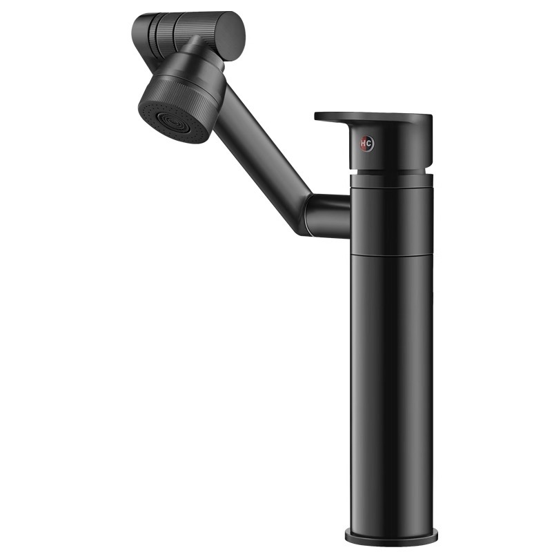 - 加高款30cm【哑光黑-冷热】德系全铜龙头+万向旋转+两档出水
