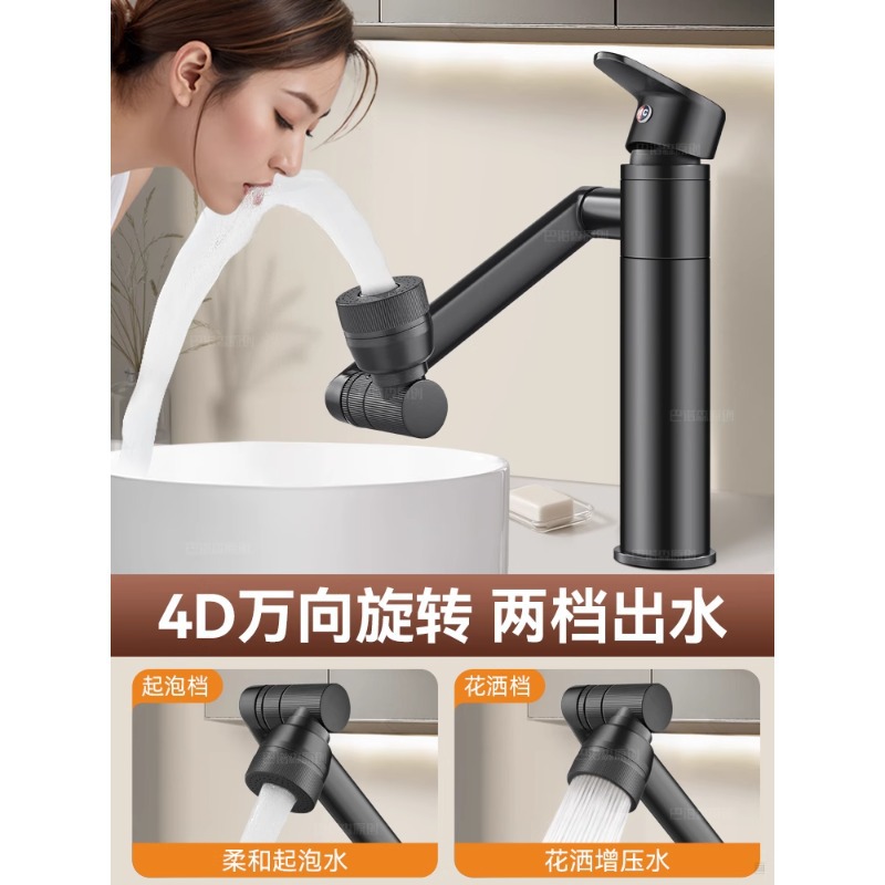 全铜洗脸盆水龙头家用卫生间冷热万向机械臂浴室台洗脸池面盆龙头