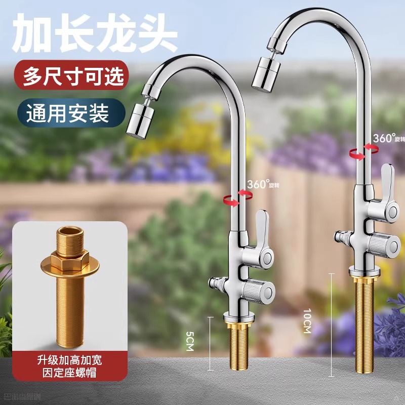 - 银色【双出水-加长脚10cm】全铜单冷●两档出水●防冻防晒