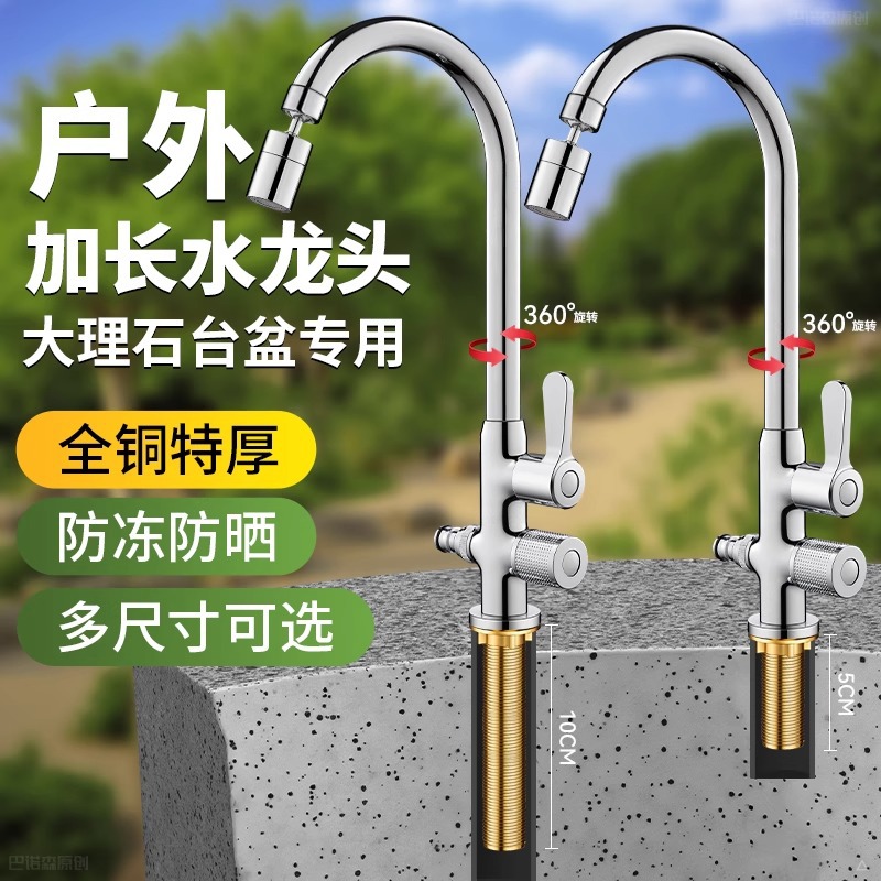 户外防晒水龙头单冷庭院室外洗手盆台盆大理石盆防冻龙头全铜