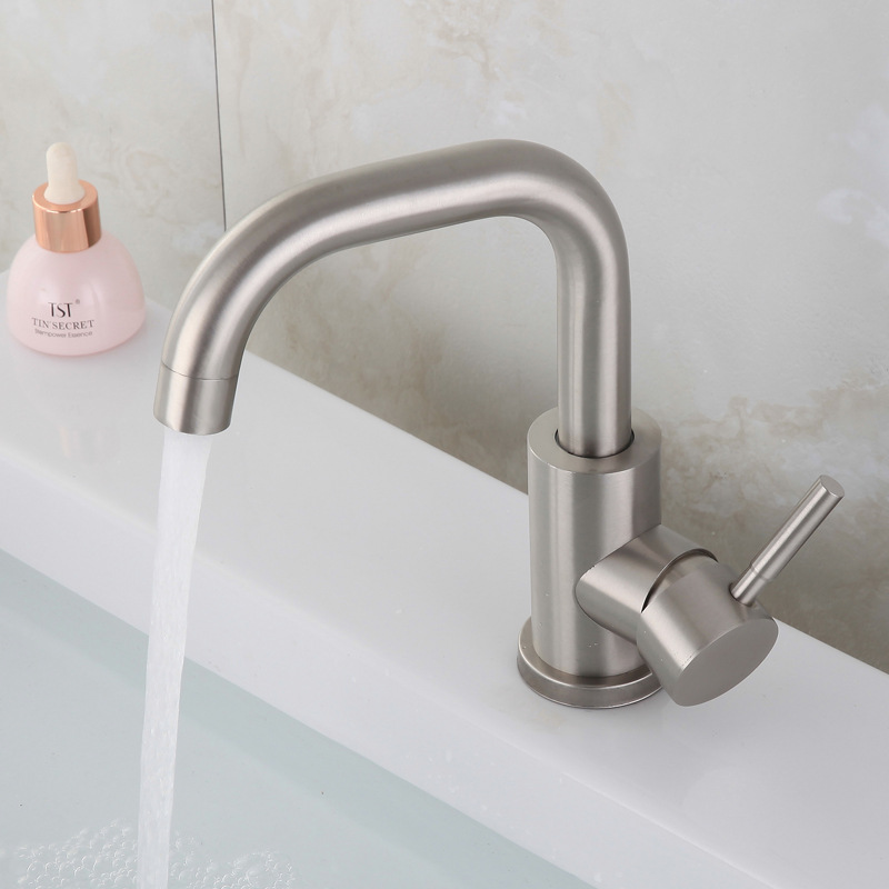 304不锈钢冷热水龙头面盆单孔洗手洗脸盆台下盆龙头旋转