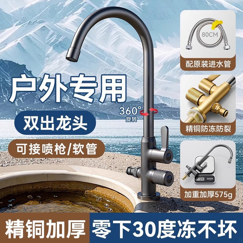 户外防晒水龙头单冷庭院室外洗手盆台盆大理石盆防冻龙头全铜