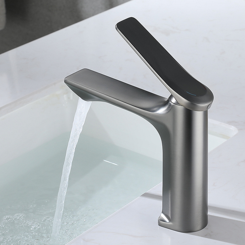 全铜芯面盆冷热水龙头枪灰色奶油风轻奢新款卫浴洗手盆家用