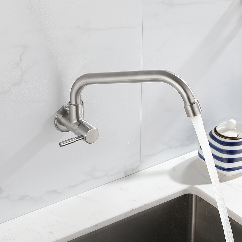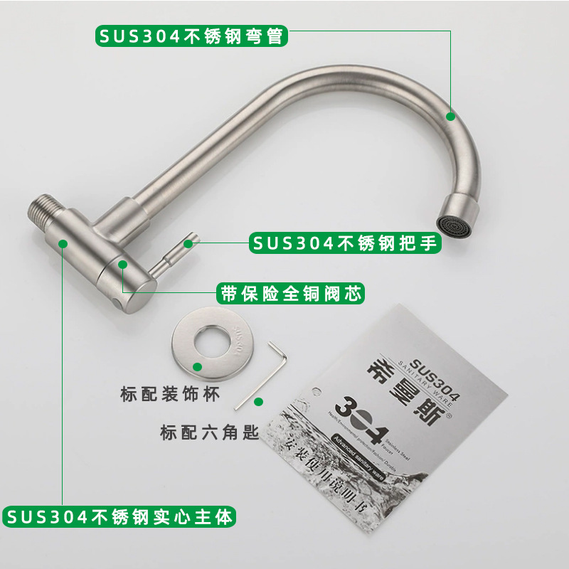 入墙式304不锈钢单冷横式水龙头厨房拖把池阳台洗衣池大弯低管