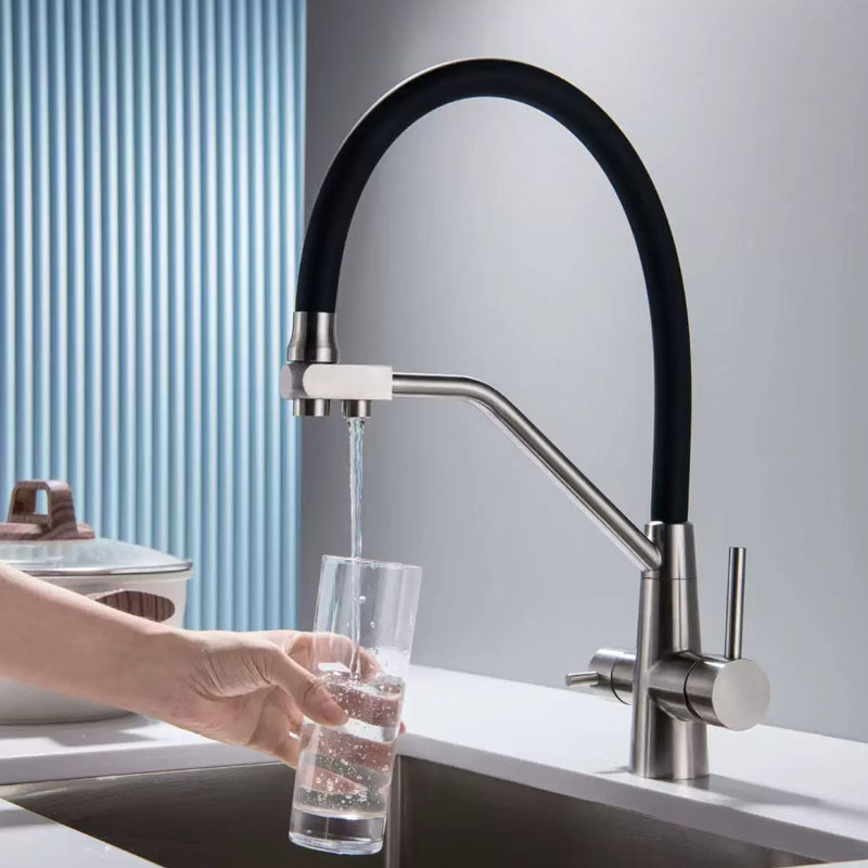 304不锈钢三水道三合一带净水冷热水厨房水槽双用水龙头