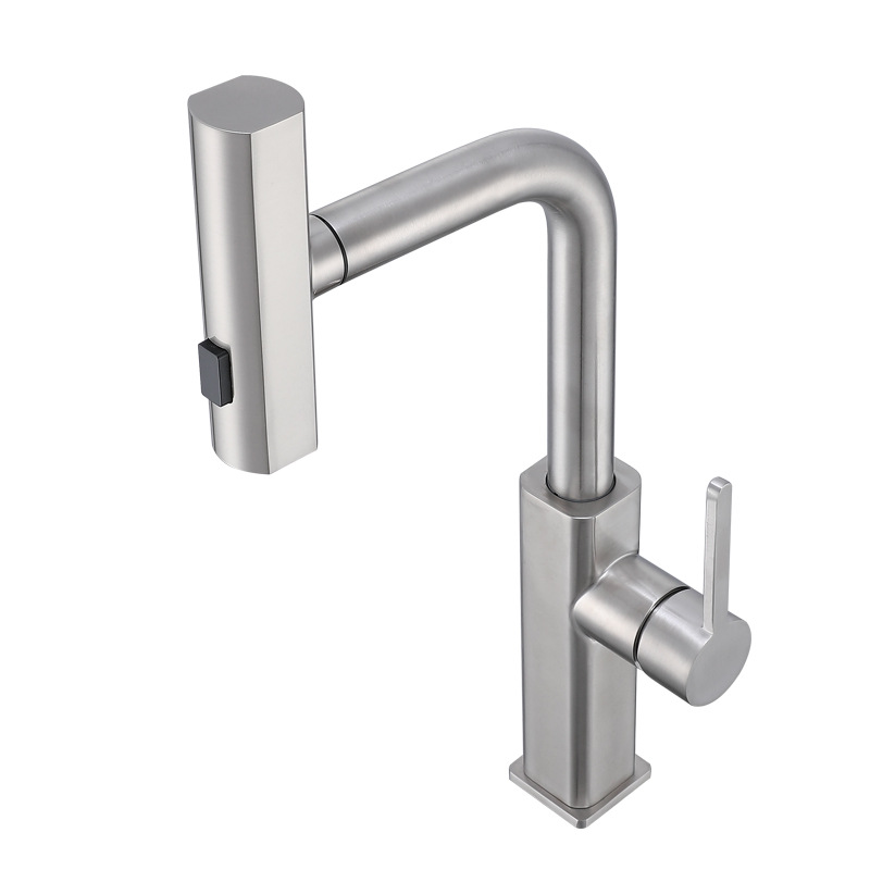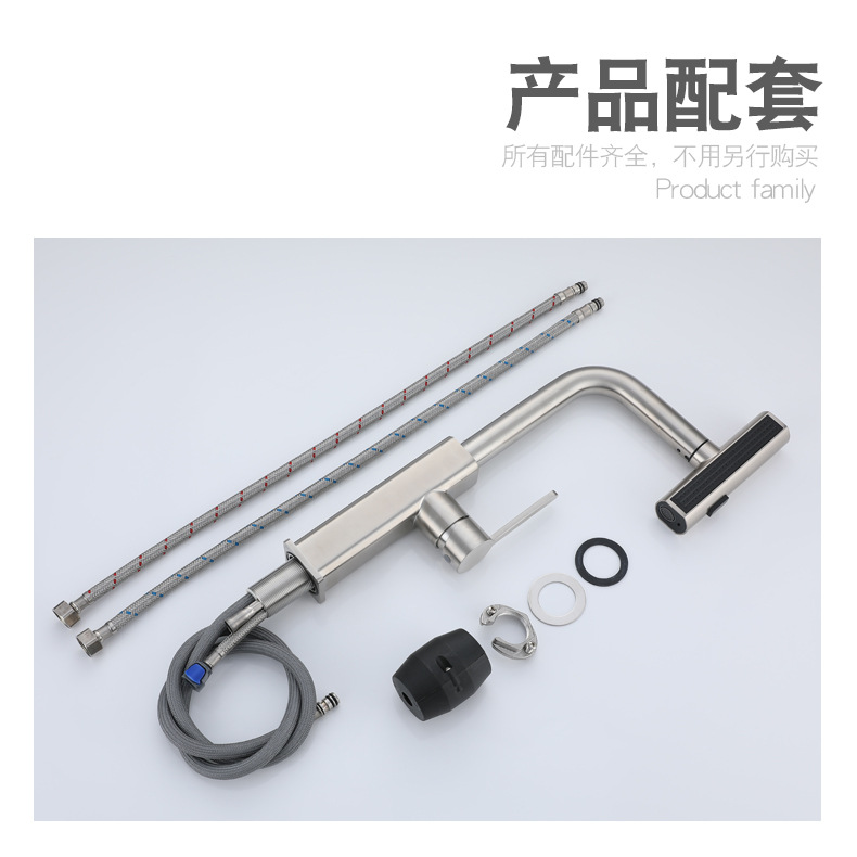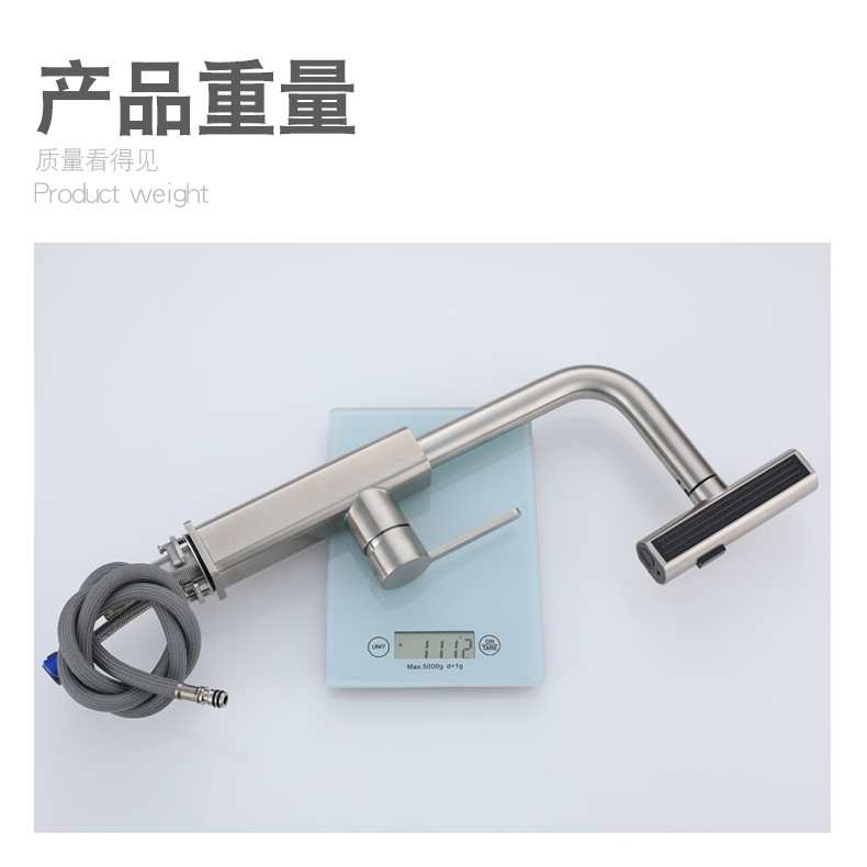 厨房抽拉式飞*雨瀑布水龙头冷热龙头304不锈钢单孔厨房水龙头卫浴
