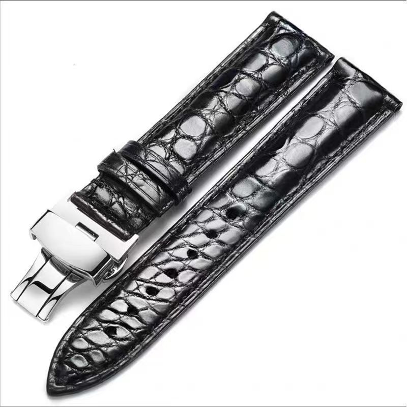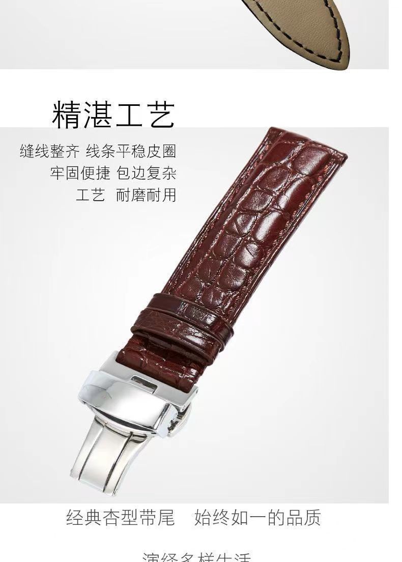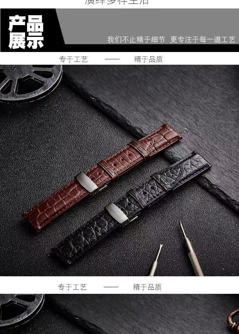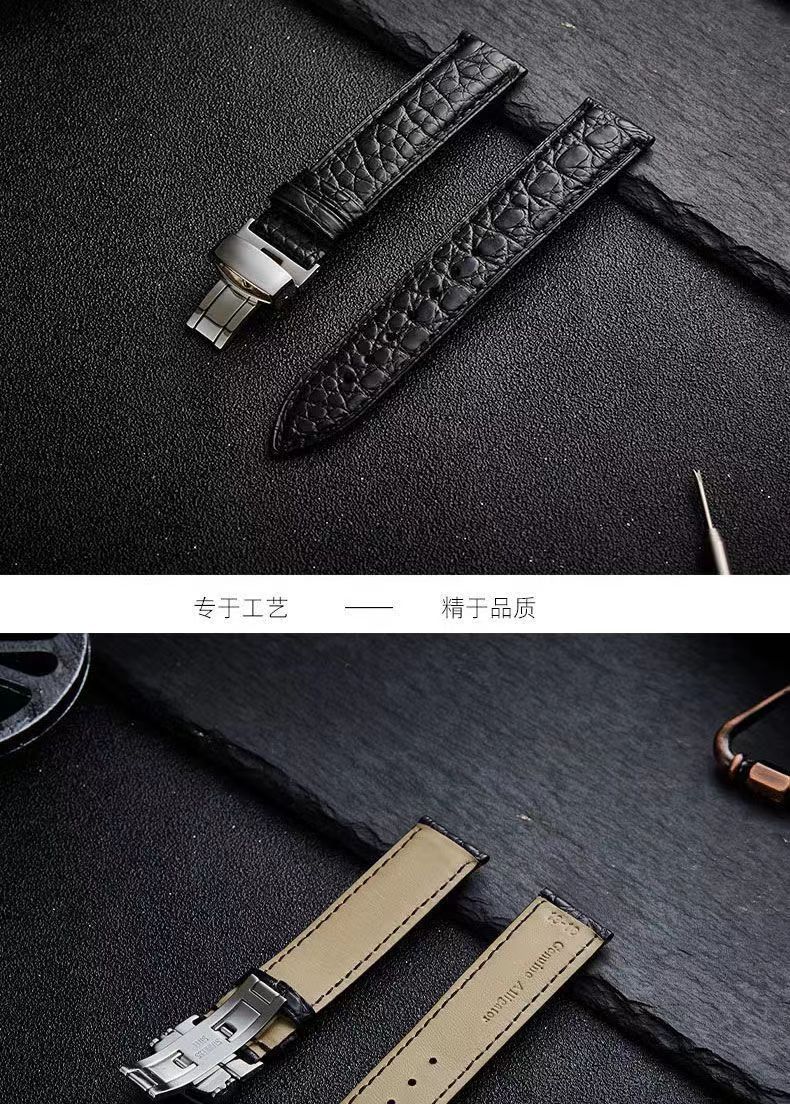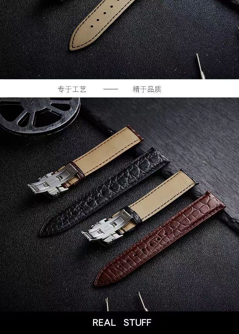 男女通用手表带蝴蝶扣耐磨防水柔软头层皮鳄鱼纹表带运动款真皮