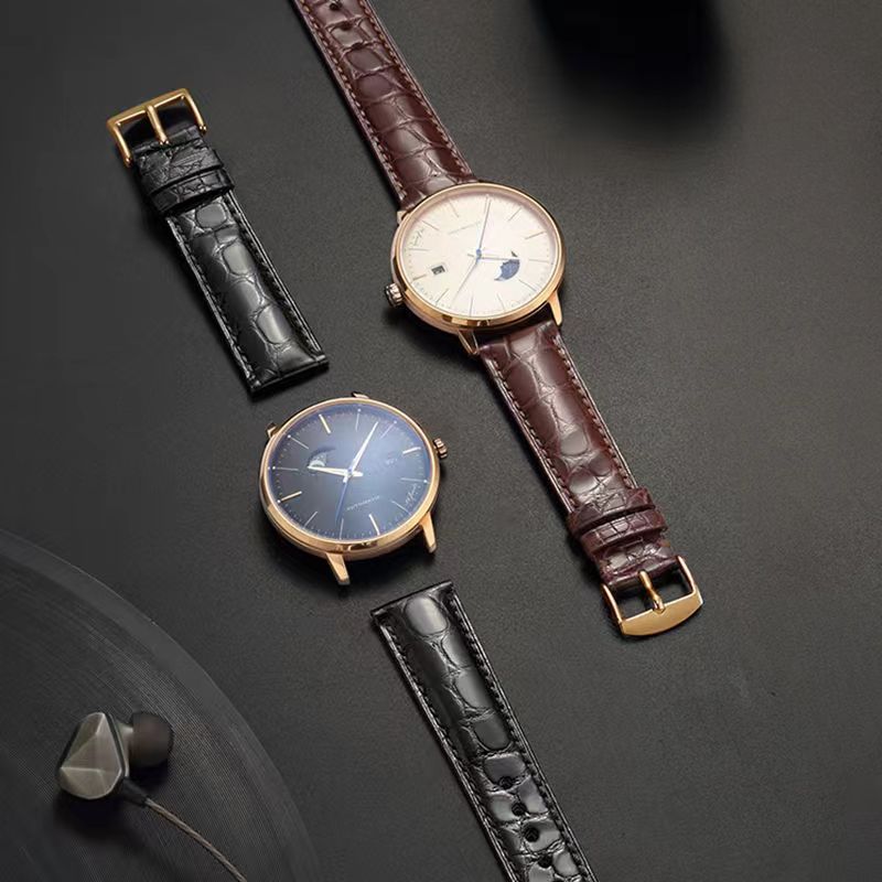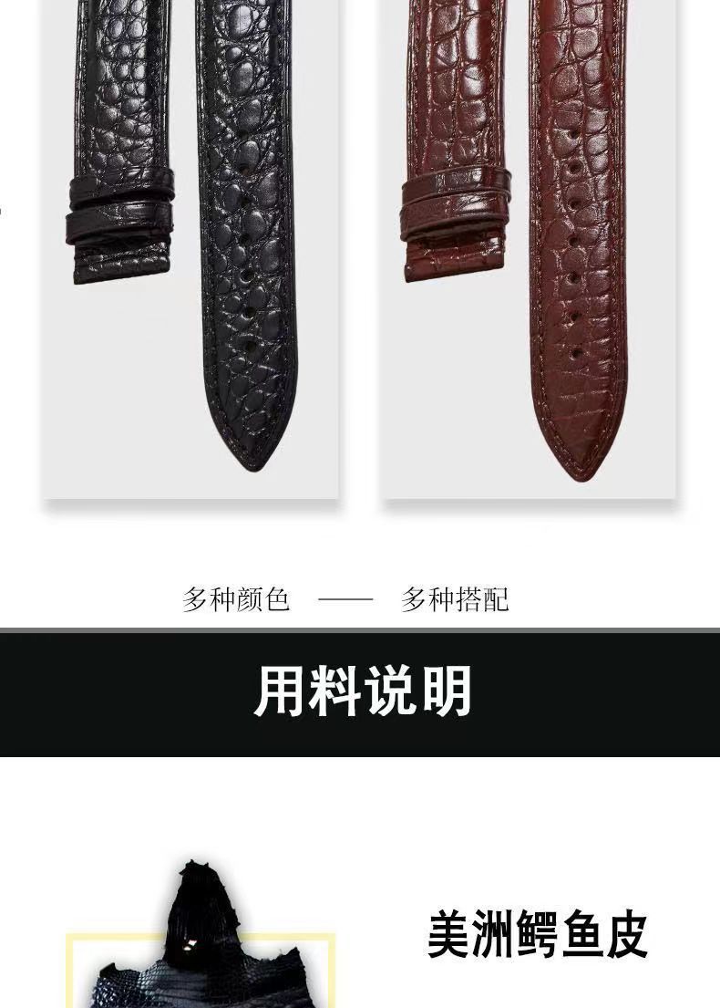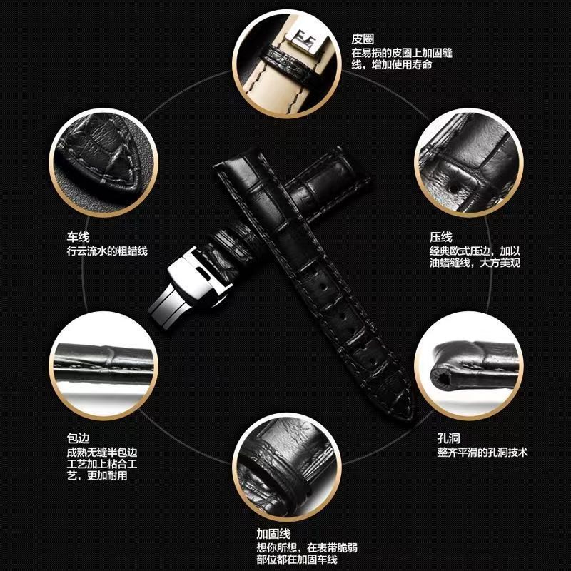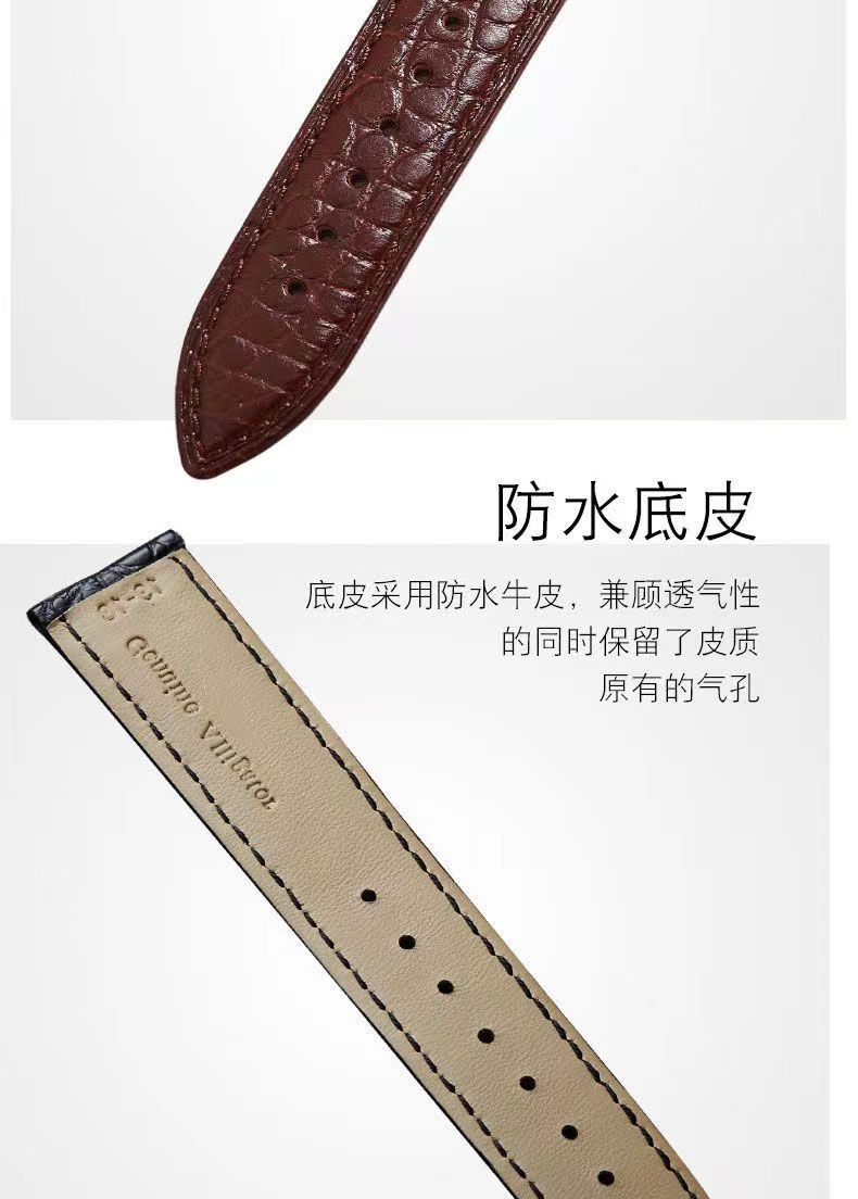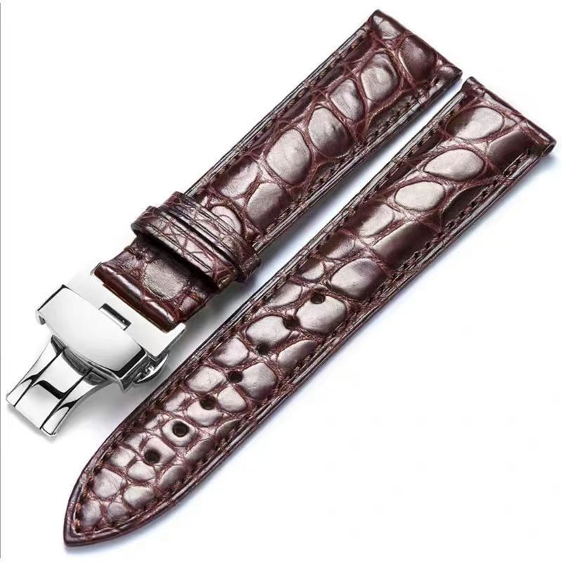男女通用手表带蝴蝶扣耐磨防水柔软头层皮鳄鱼纹表带运动款真皮