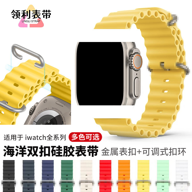 适用苹果手表applewatch1-9/SEultra新款海洋硅胶双扣iwatch表带
