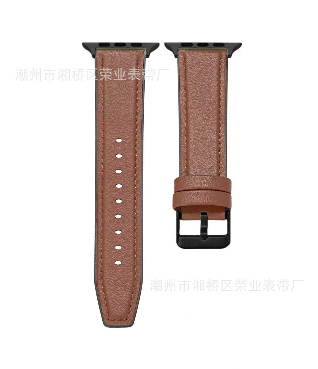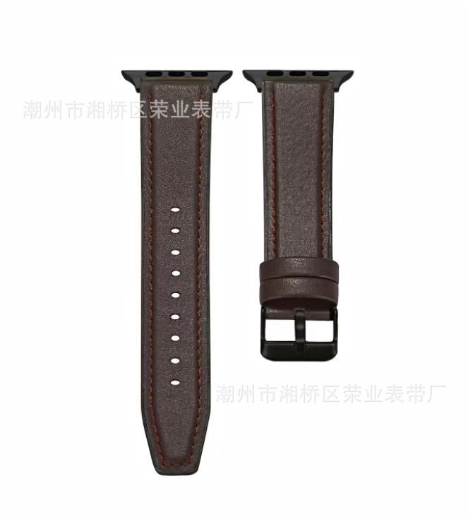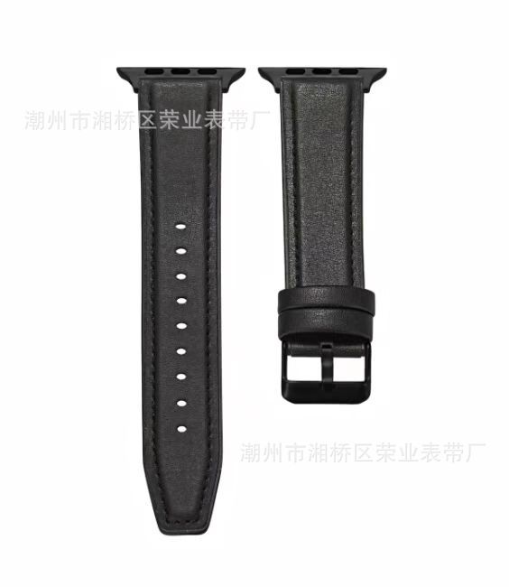 适用苹果手表带iWatch2/3/4/5/6代硅胶贴真牛皮苹果表带