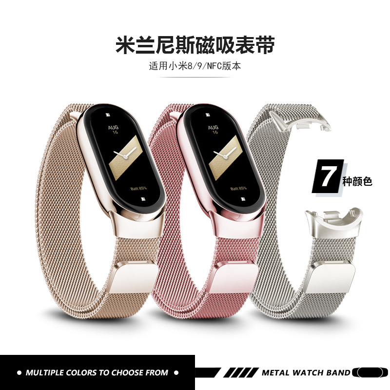 适用小米手环89代米兰表带小米手环9nfc不锈钢米兰尼斯磁吸手表带