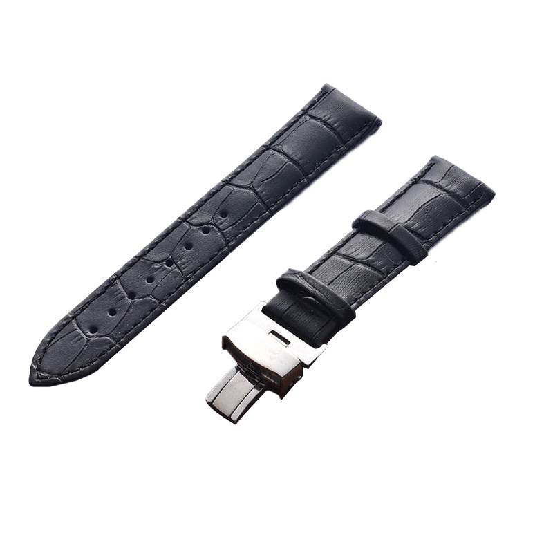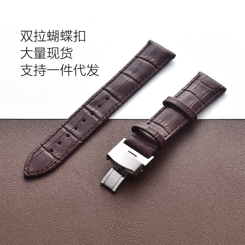 小牛皮双拉蝴蝶扣表带男女手表带可加logo手表配件
