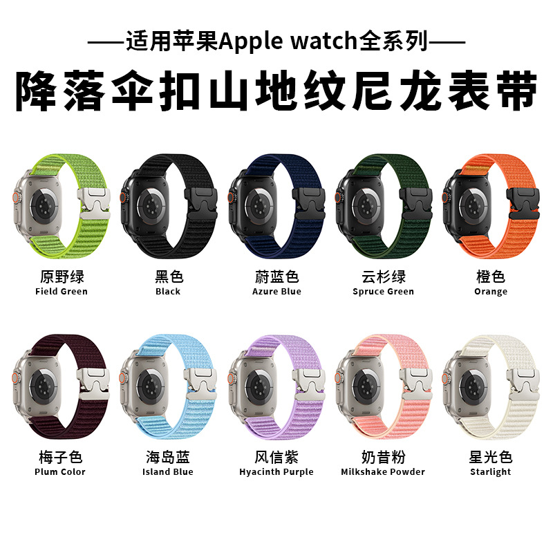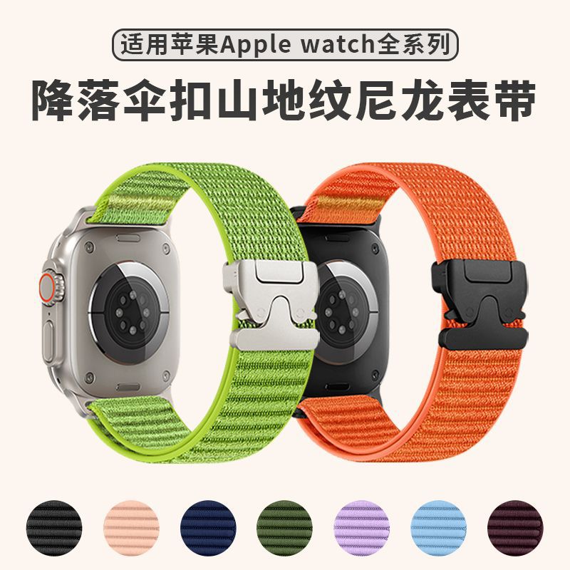 适用苹果applewatch手表带iwatchs11降落伞扣山地纹尼龙回环表带